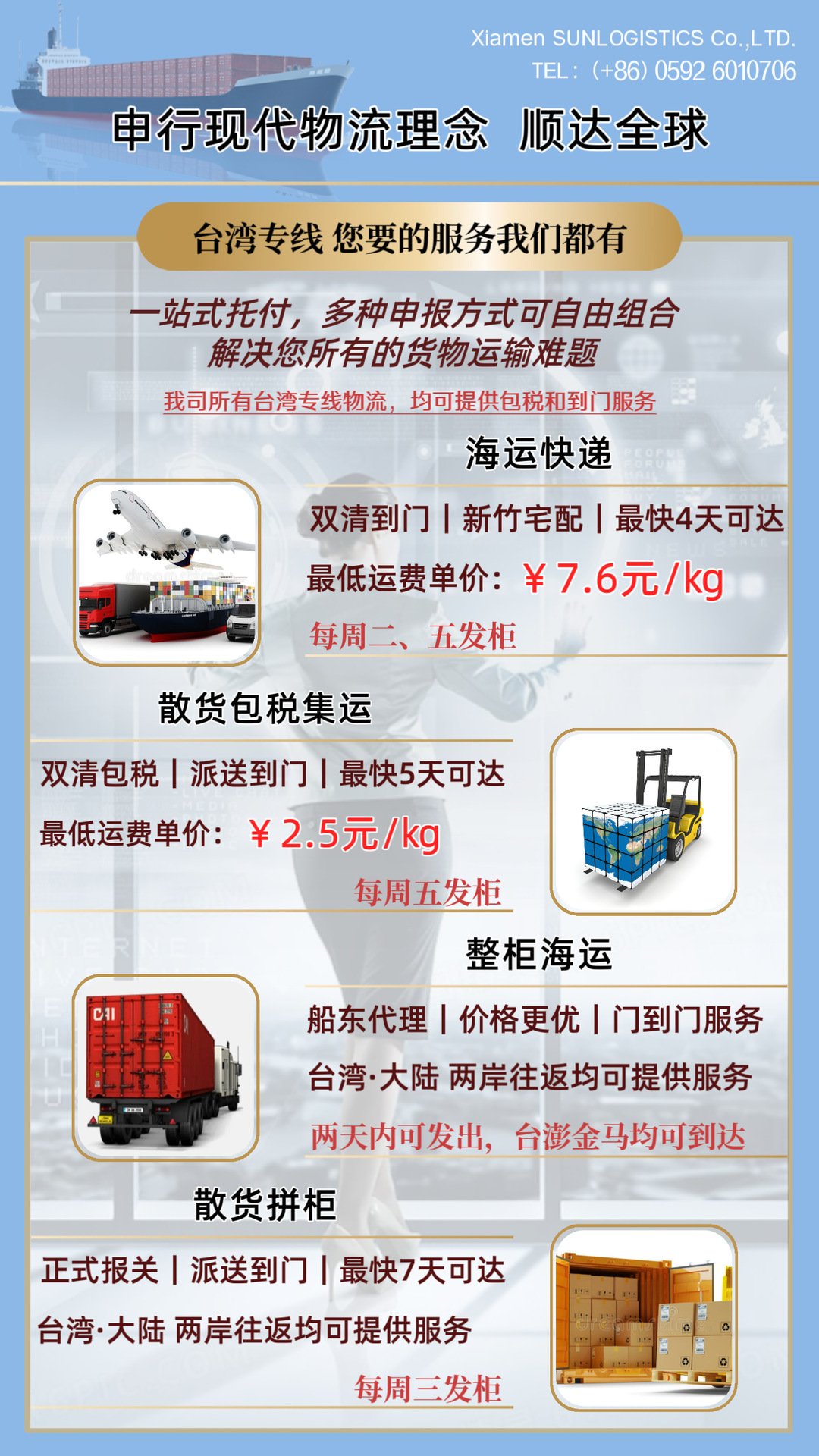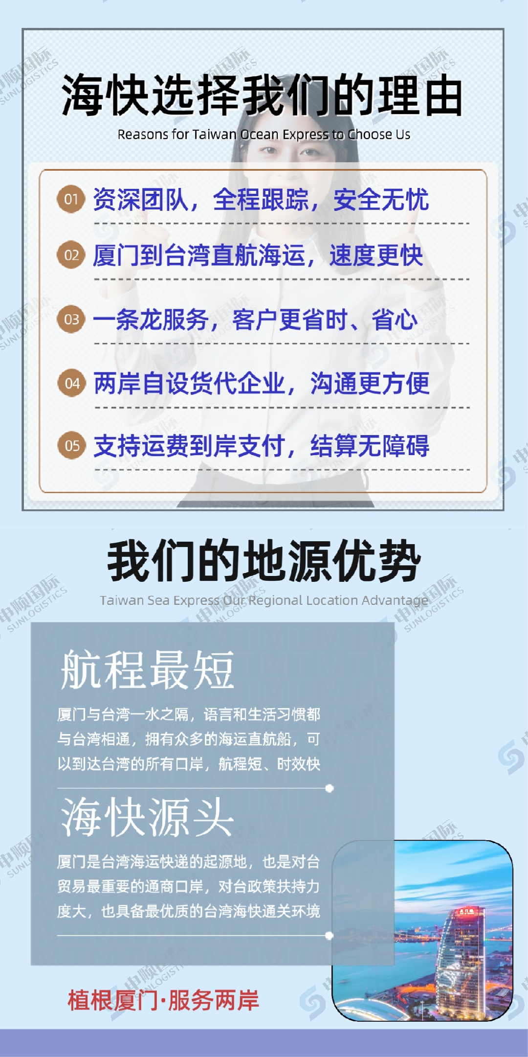 Маршрут Direct shipping from Xiamen to Taipei Port, available on the same day