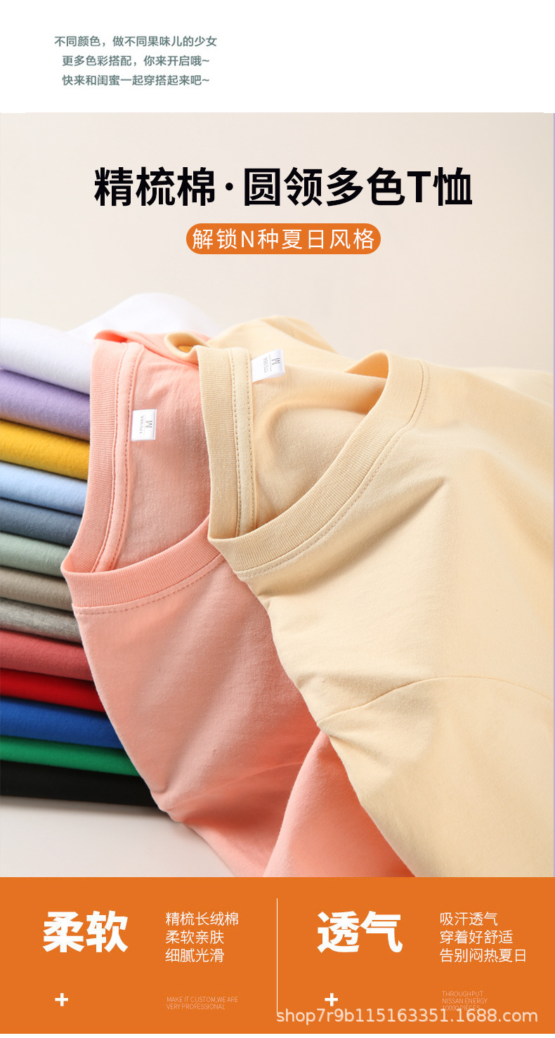Оптовая продажа футболки с круглым вырезом из 200 г хлопка для мужчин и женщин, короткий рукав, свободный, однотонный