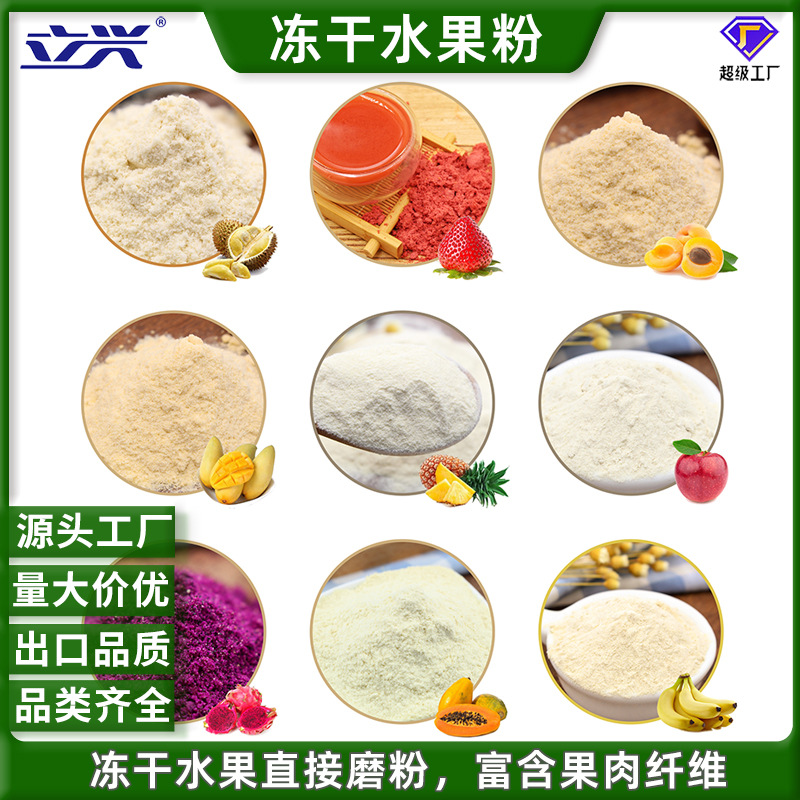 Порошок замороженных фруктов Lixing, оптовая продажа, холодная вода, мгновенное замороженное клубничное, ананасовое, банановое, манговое, яблочное, дуриановое, черничное порошки
