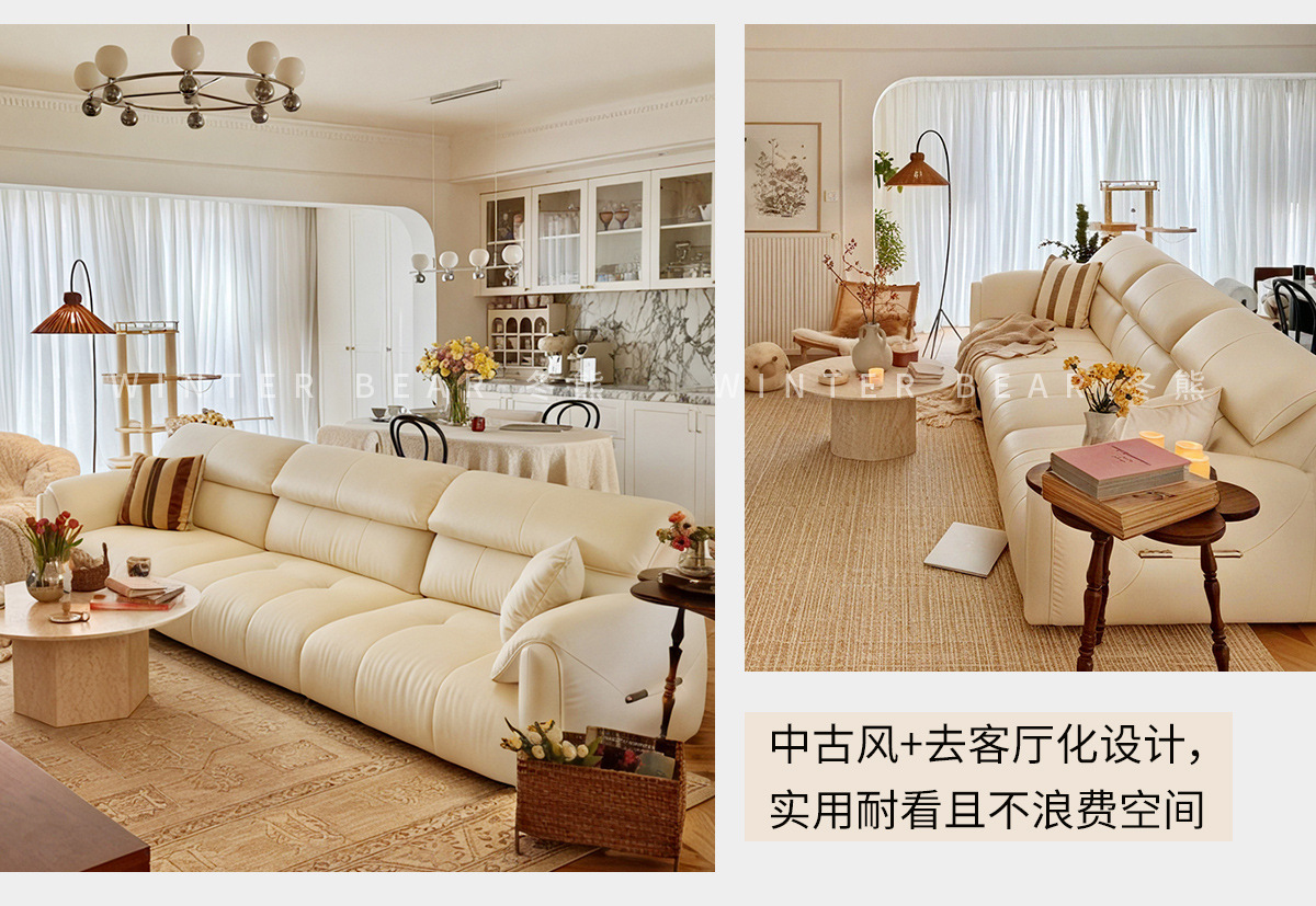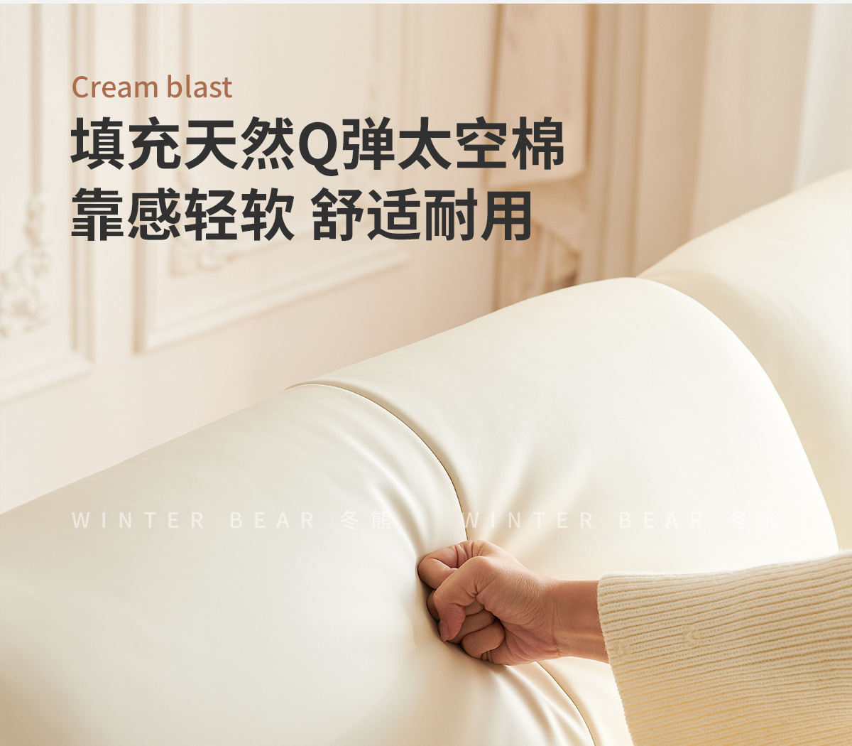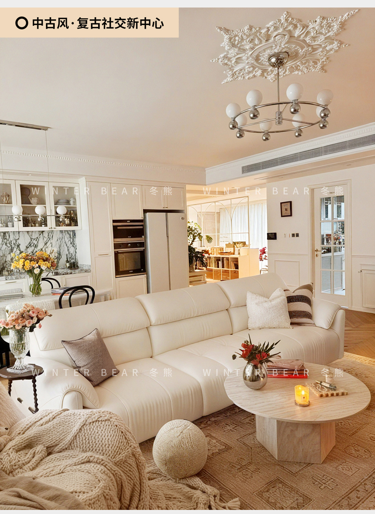 Специальный легкий диван из первой кожи для гостиной маленькой квартиры стиль французского крема