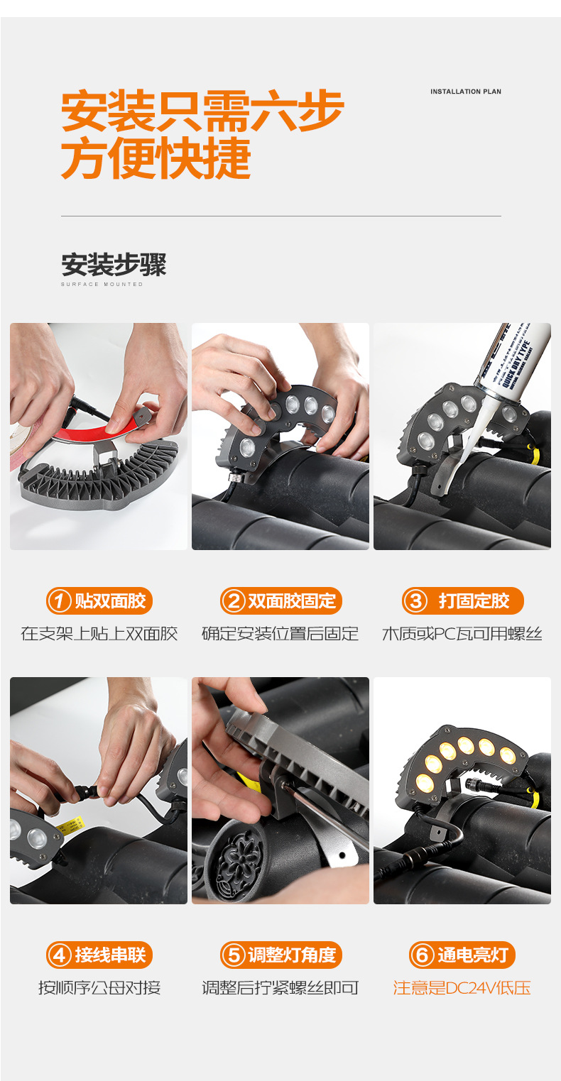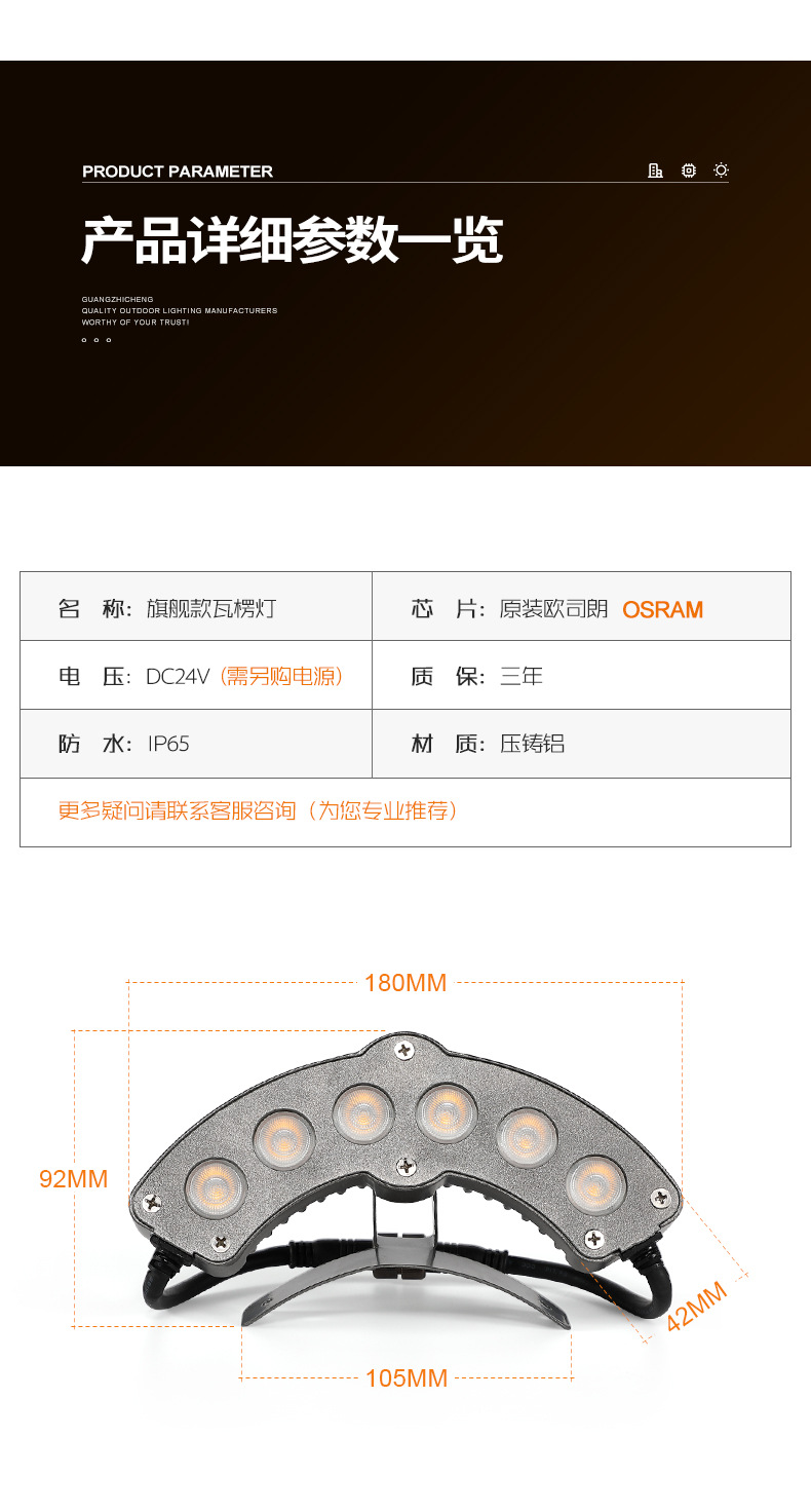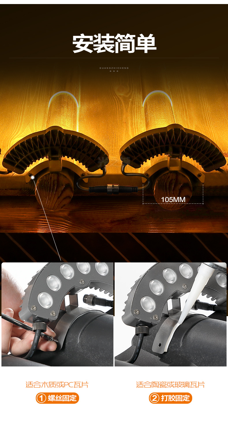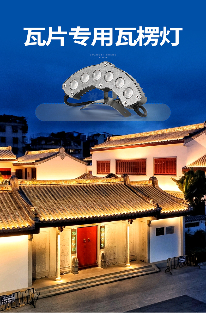 Светодиодная волнистая лампа для улицы, водонепроницаемая, регулируемый угол, проектное освещение, карнизы, 6W, производитель черепичных ламп