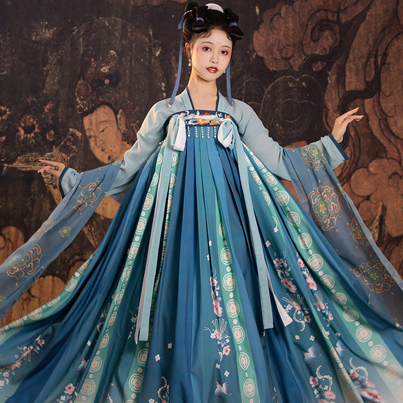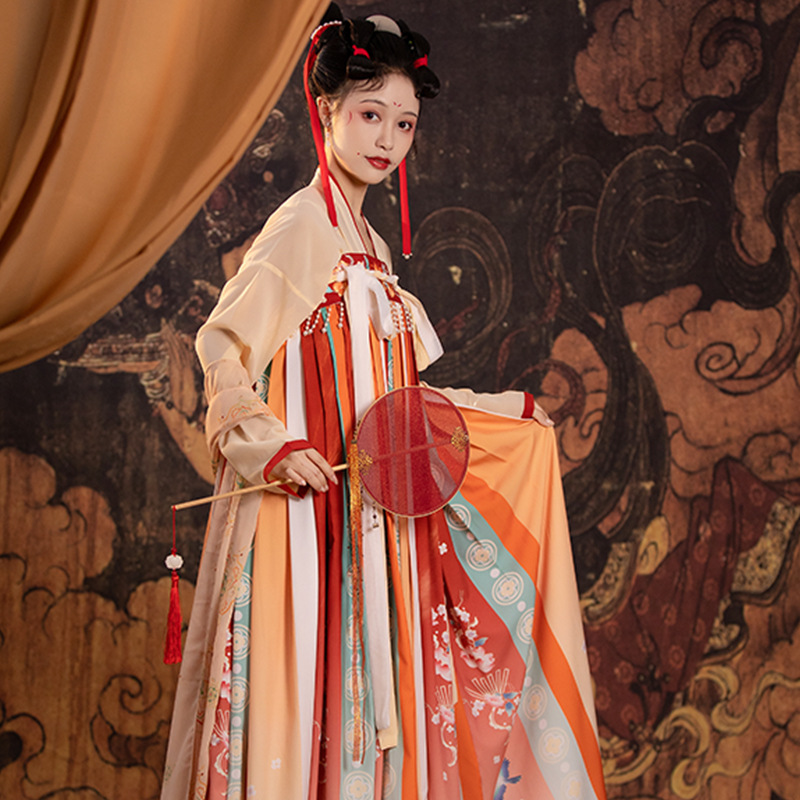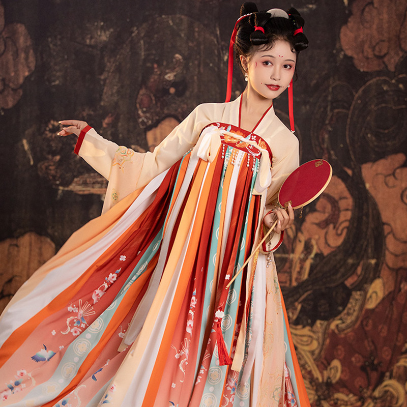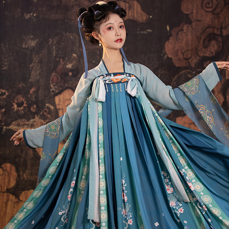 Новый взрослый ханфу Ци с вышивкой, китайский стиль, комплект весенне-летней повседневной одежды, юбка с яркой печатью, полный комплект древнего костюма