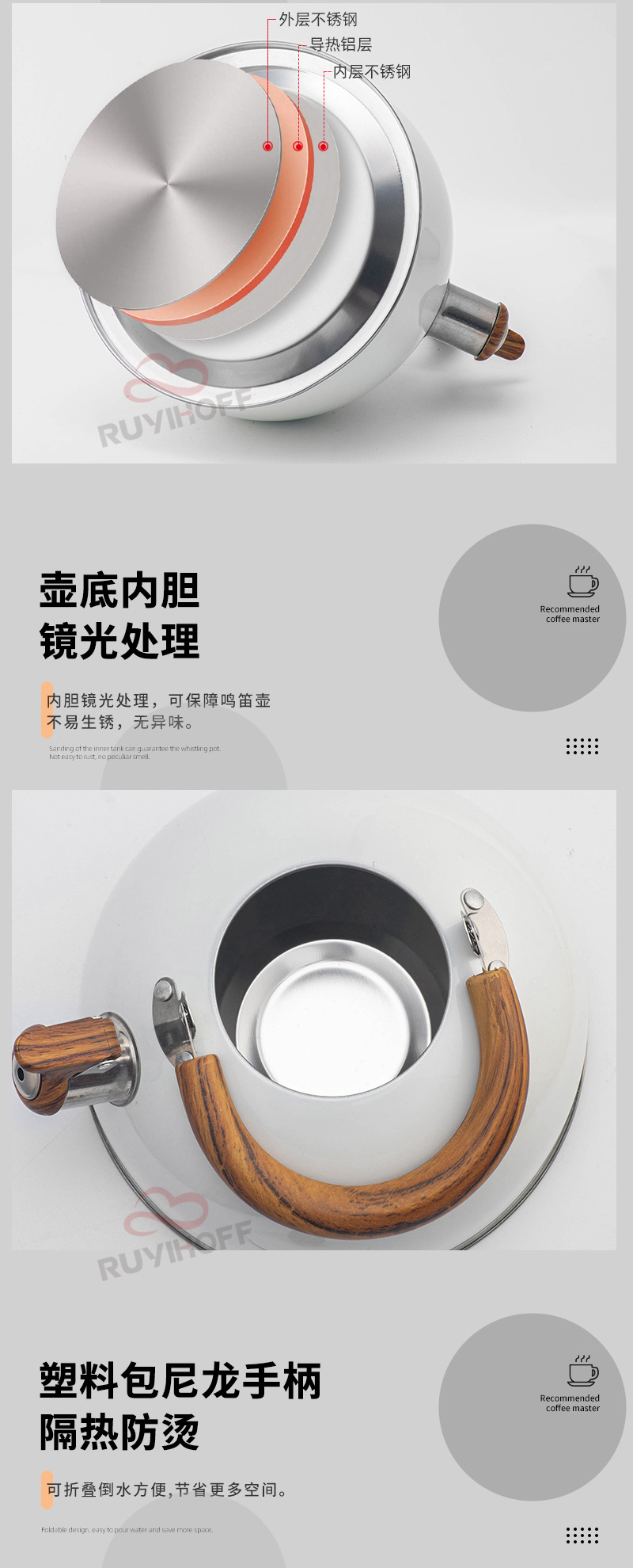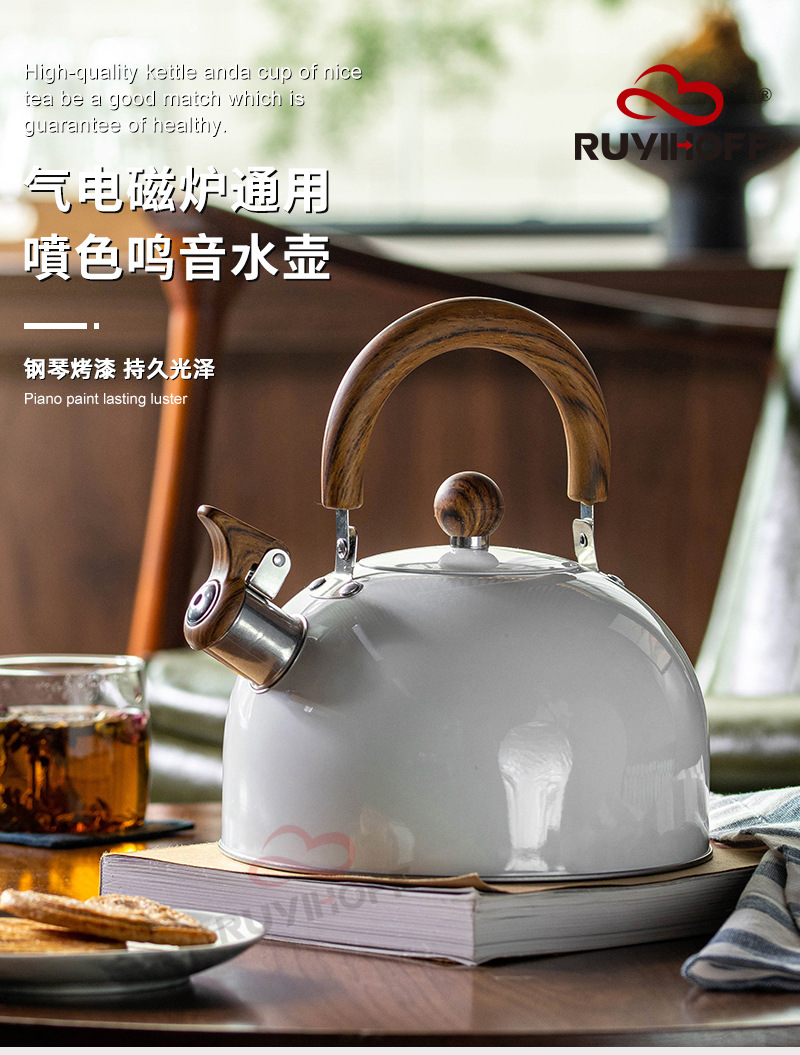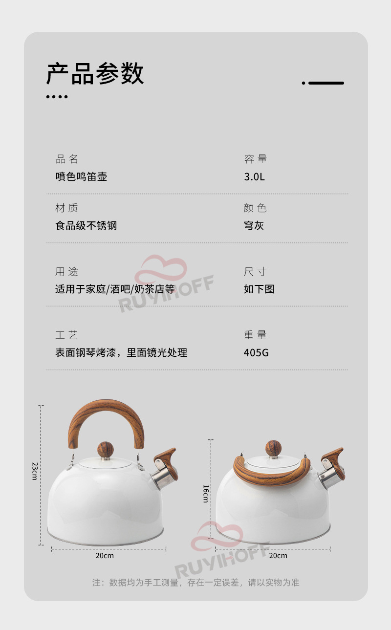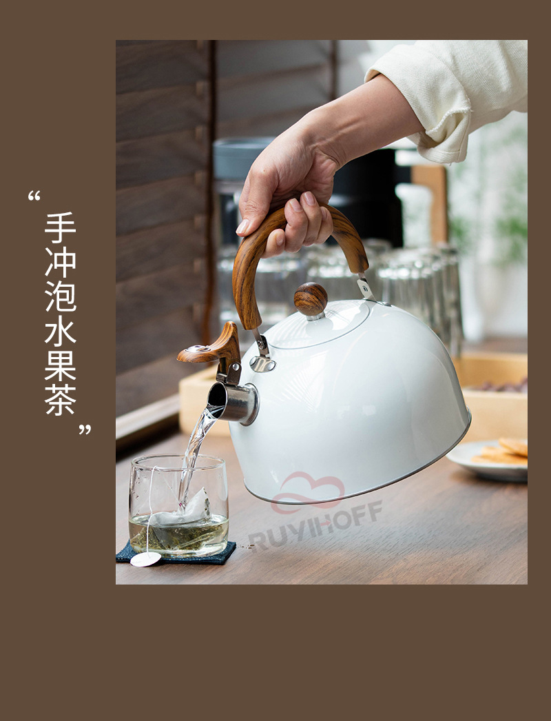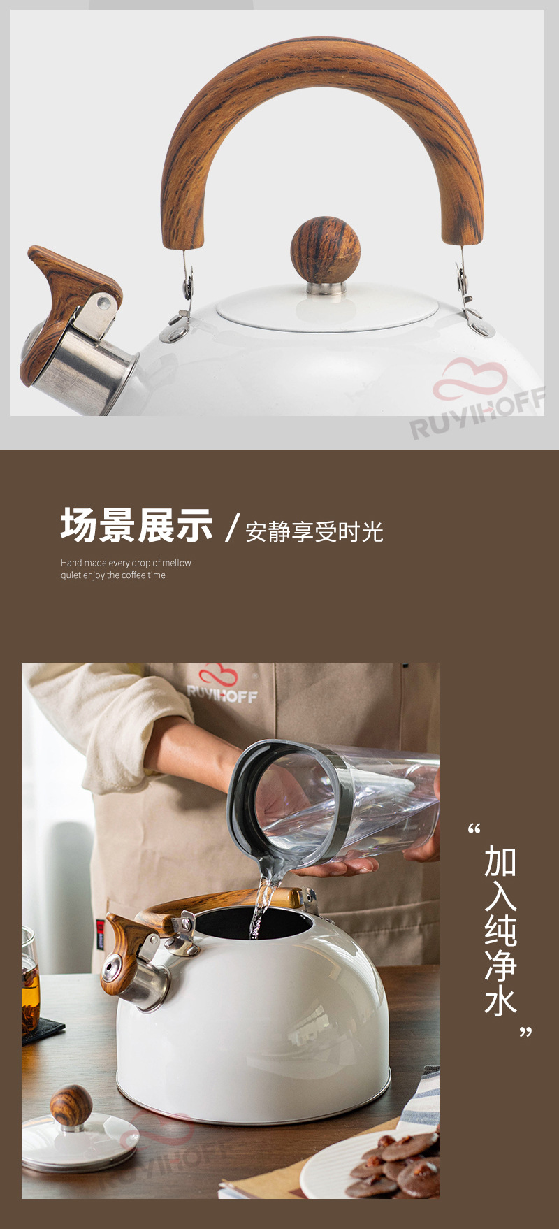 Новый белый свистящий чайник 3L для чая и кофе, с деревянной ручкой