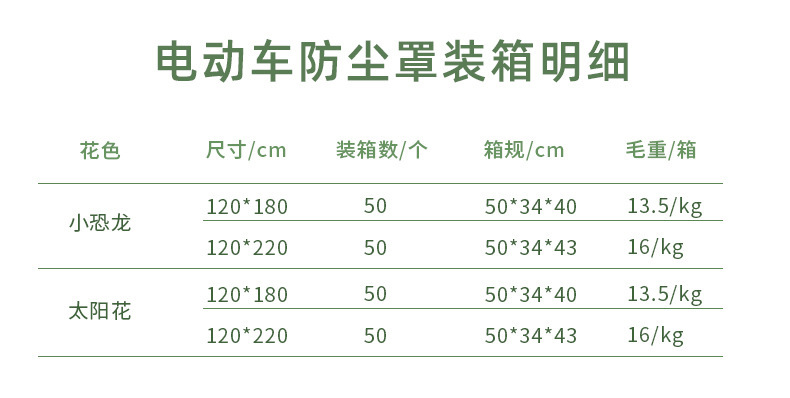 ![]() | Thickened frosted small dinosaur--large size | 180*120cm (applicable to new national standards and small electric vehicles) | ¥4.0 / ≈ 49 ₽ | 0 | 6056642502635 | |