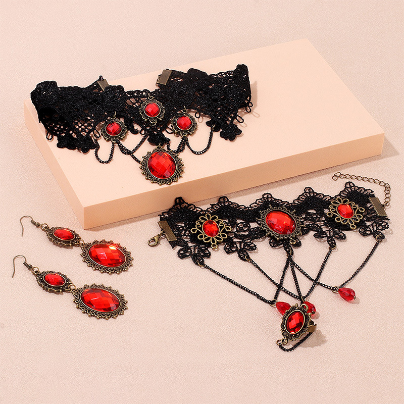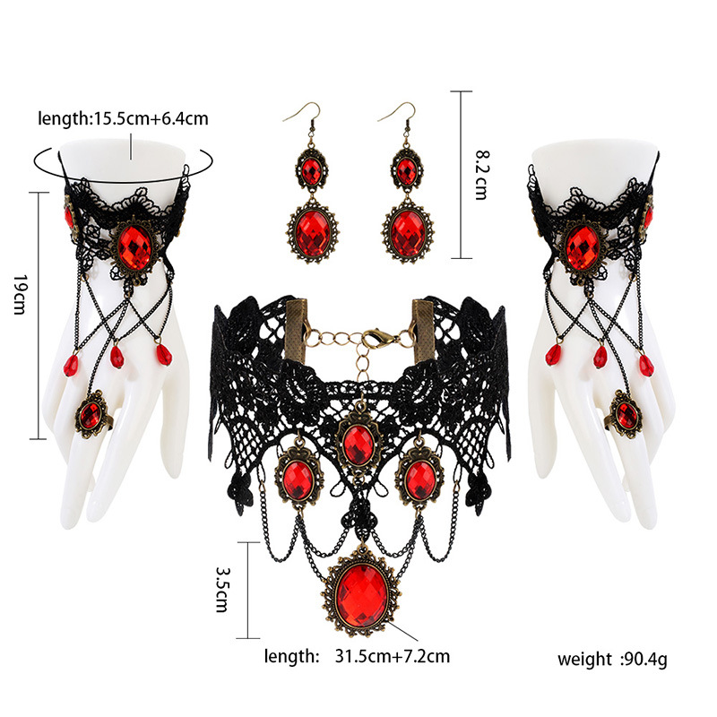 Кросс-бодер аксессуары с индивидуальным дизайном, стиль танца в дворцовом стиле, ретро кружевное ожерелье, браслет, кольцо, комплект
