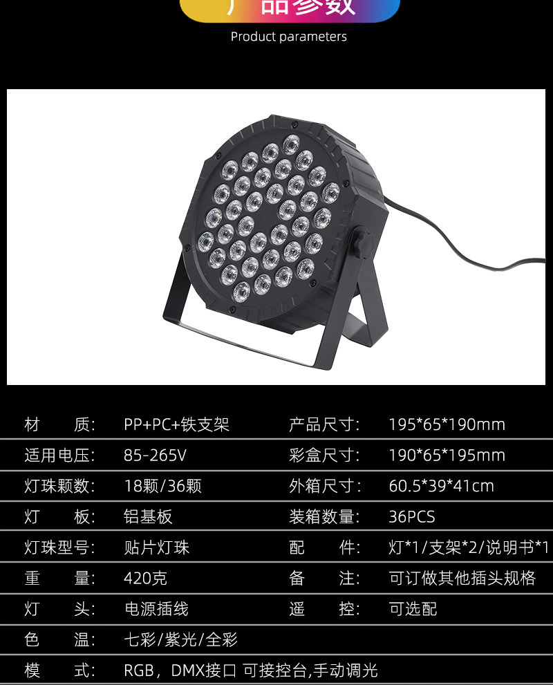 ![]() | (full color) stage lamp flats | New 36W + remote control | ¥39.0 / ≈ 474 ₽ | 9059 | 5323165760334 | |