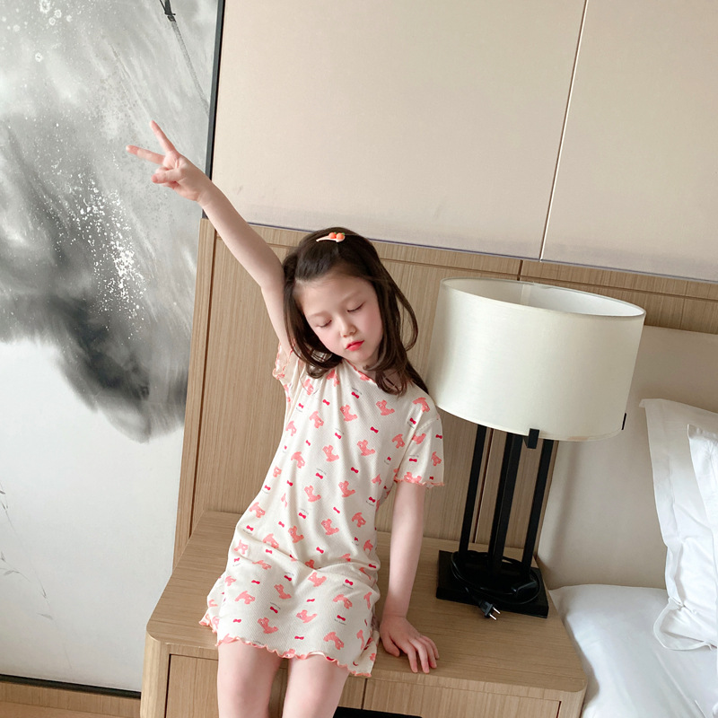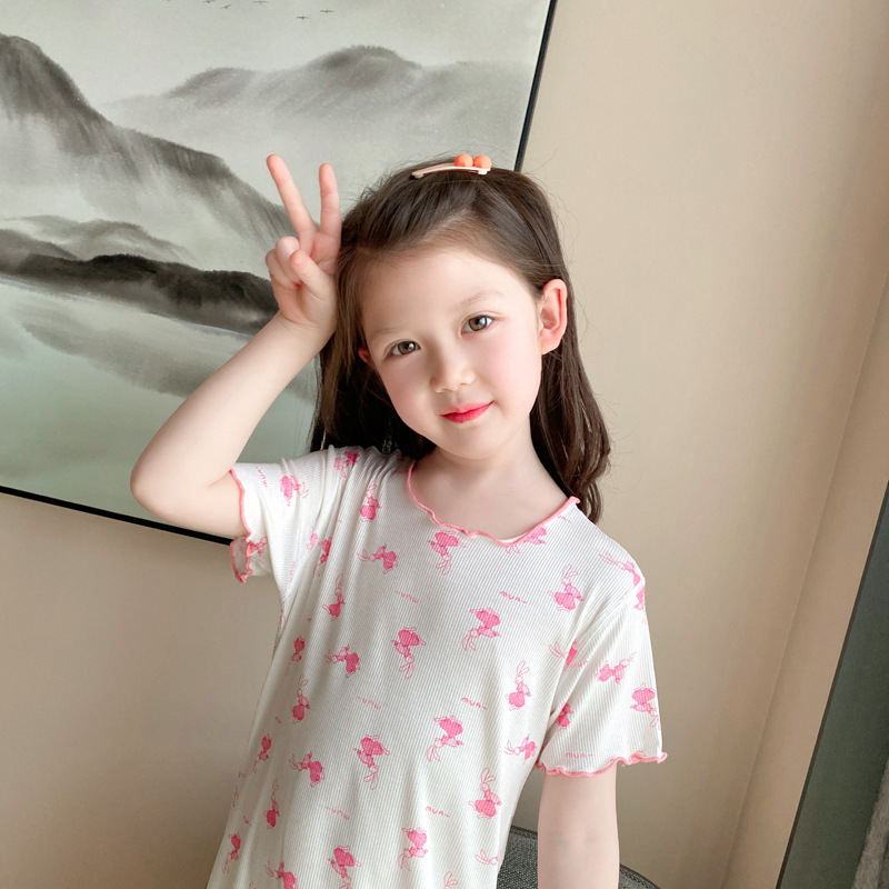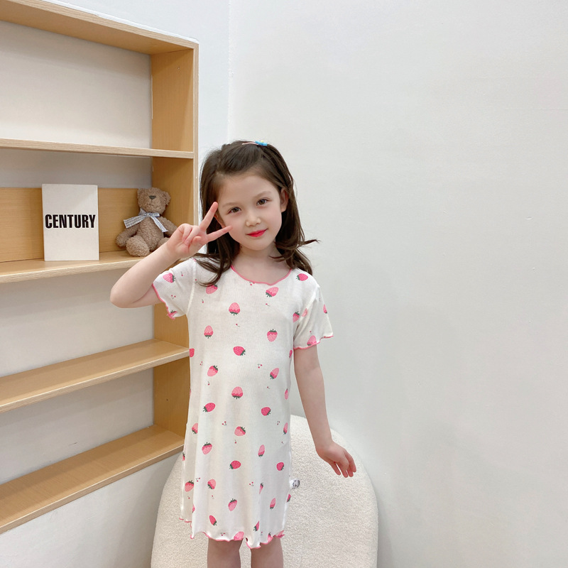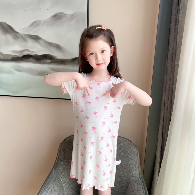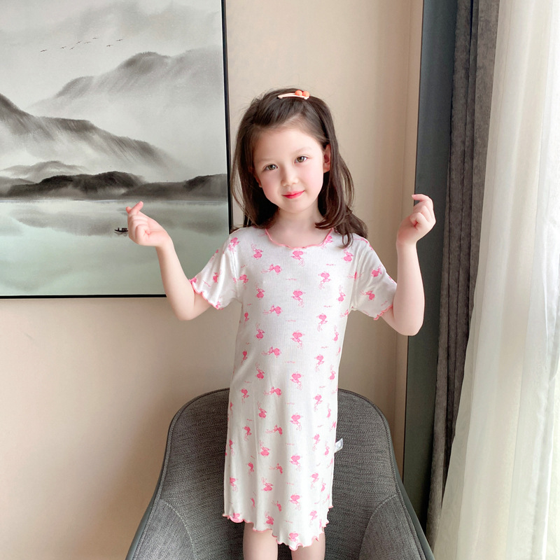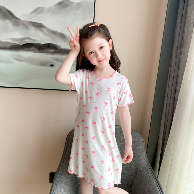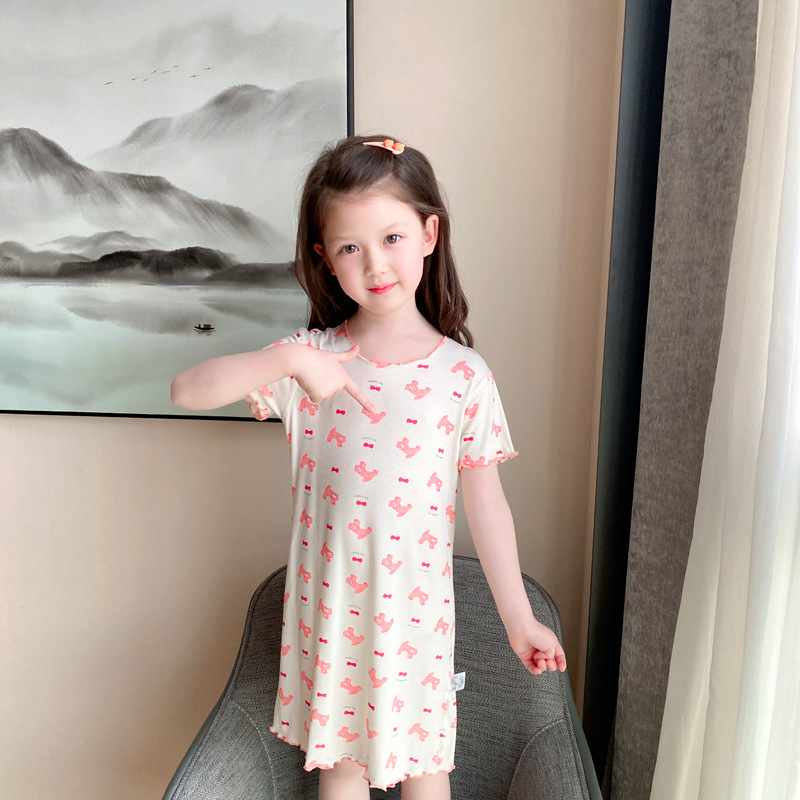 Детская ночная рубашка из модала, бесшовная летняя тонкая одежда для девочек