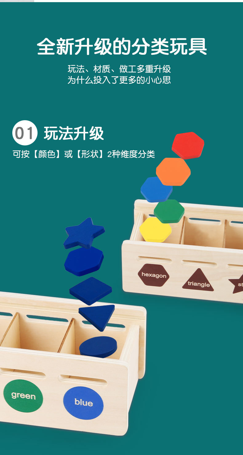 Когнитивная классификационная коробка для детей, геометрические формы, монте-сори, раннее образование, игрушки для детей 1-2 года