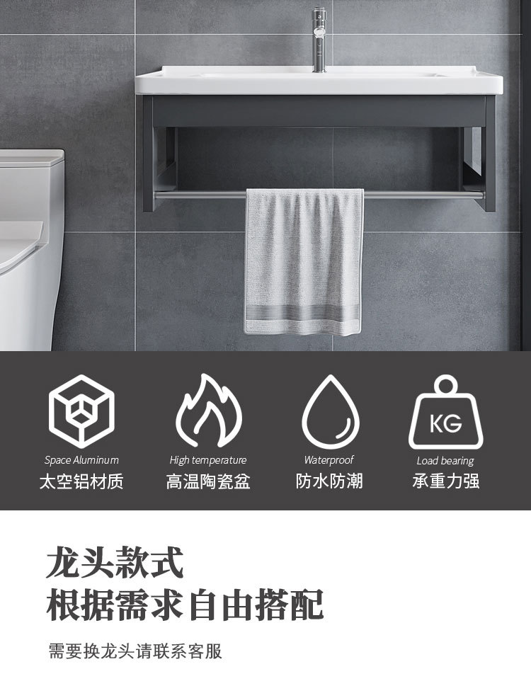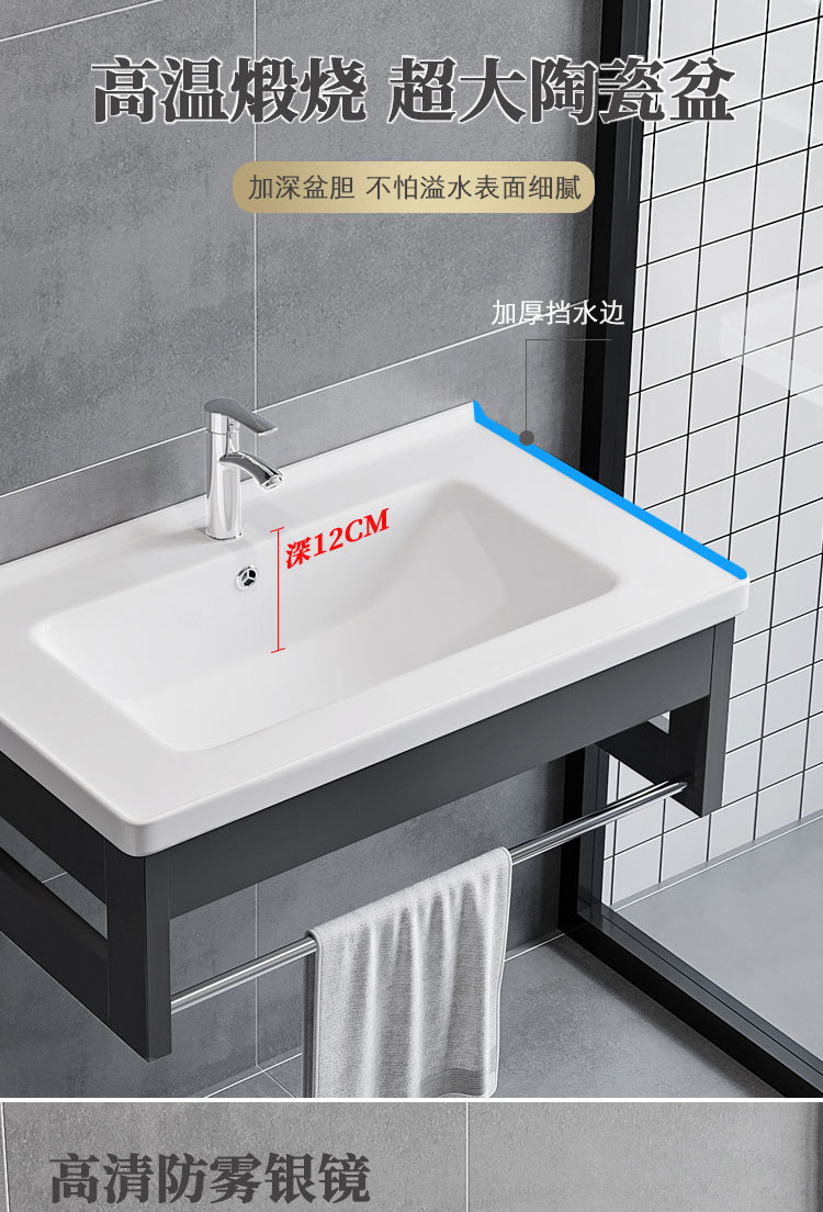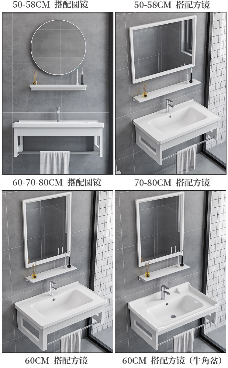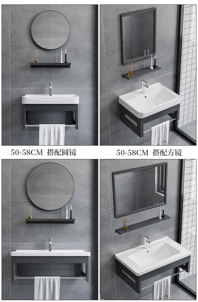 Простой алюминиевый настенный шкаф для ванной, интегрированная раковина