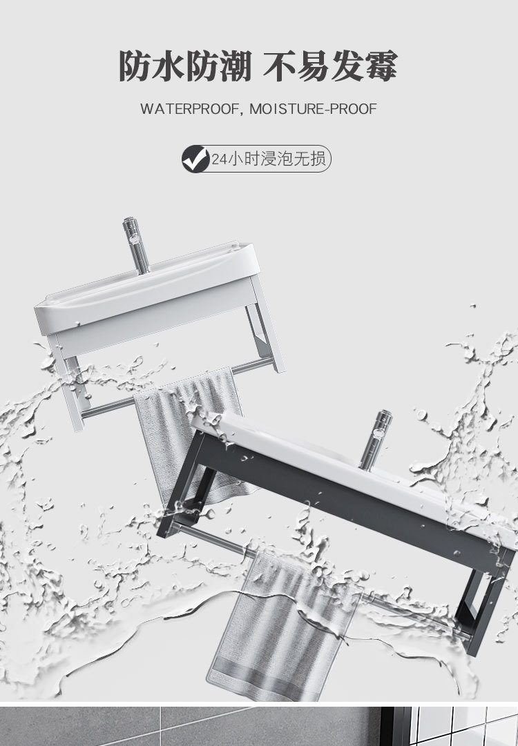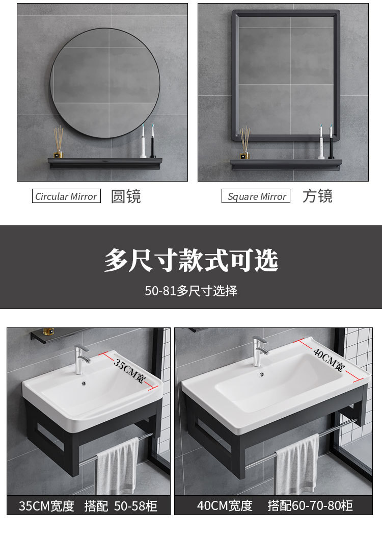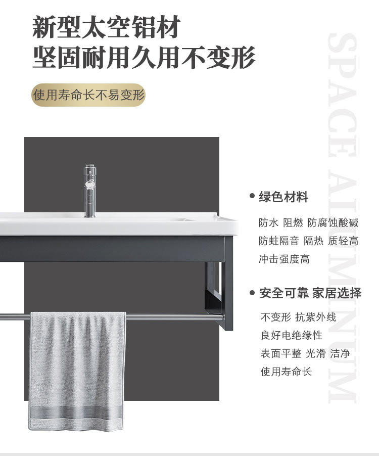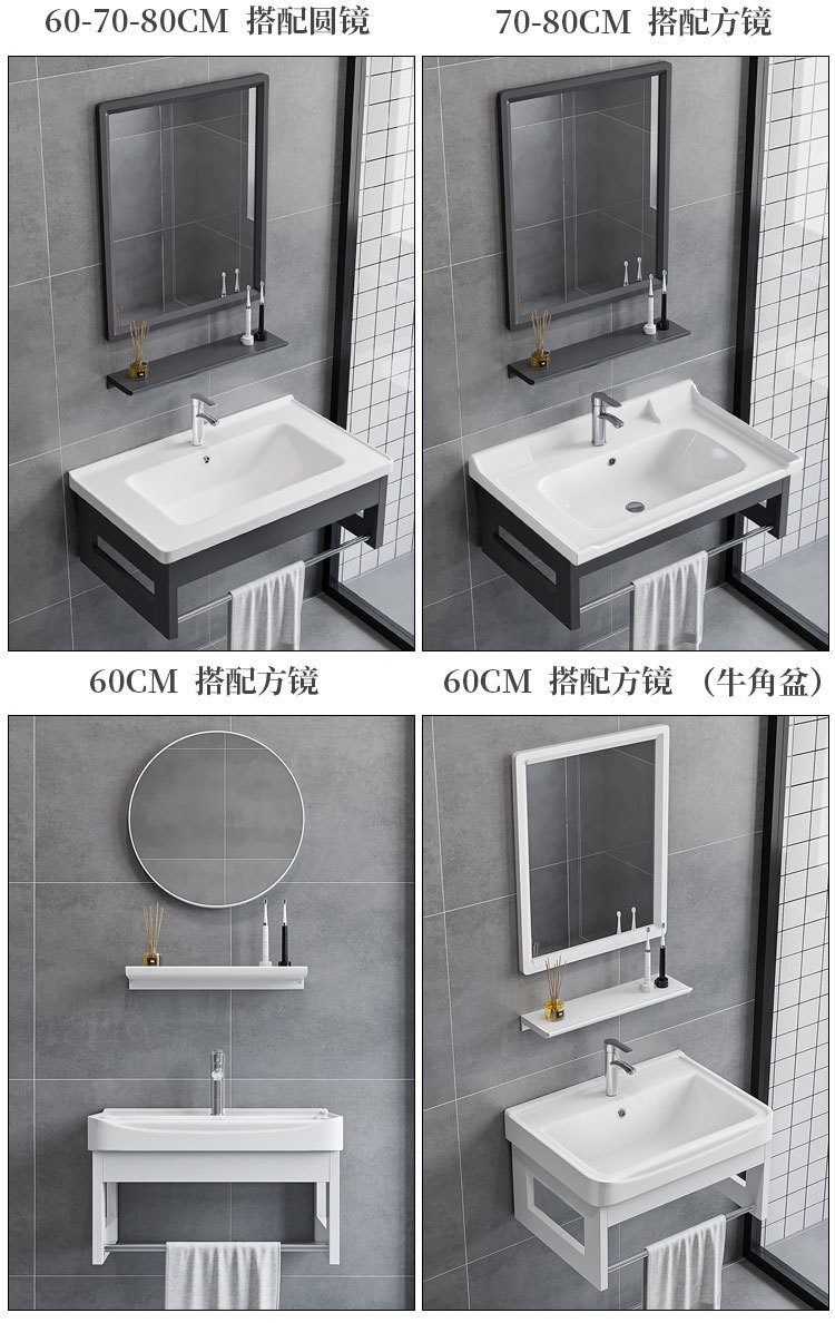 Простой алюминиевый настенный шкаф для ванной, интегрированная раковина