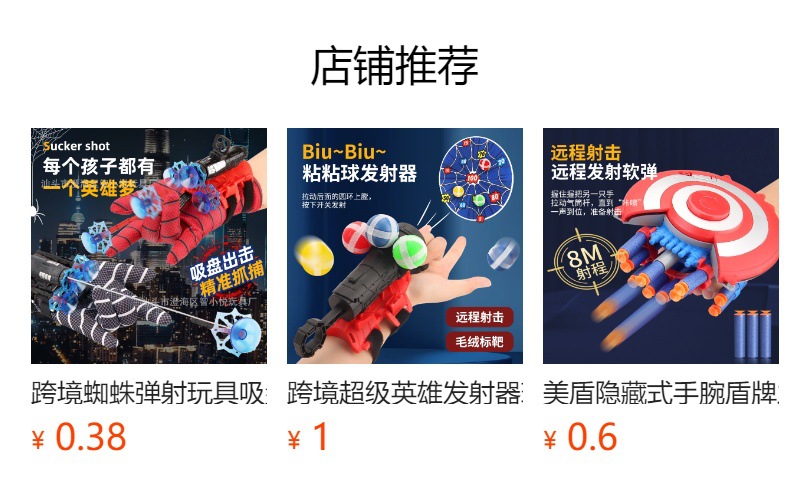 ![]() | Black spider silk (launcher 3 suction cup bomb rope 2 strap glove sight) OPP bag | Configuration as shown in figure | ¥3.3 / ≈ 40 ₽ | 99188 | 5804140146805 | |