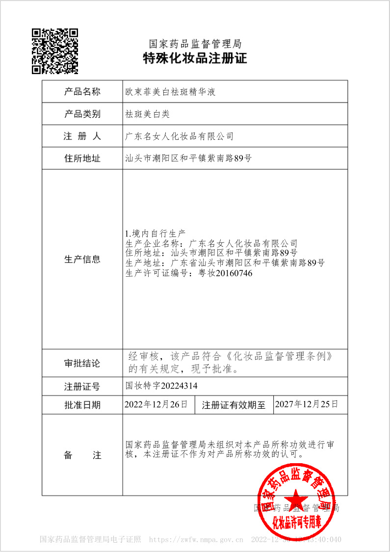 Специальное название косметического продукта Ou shufei whitening and anti-freckle essence