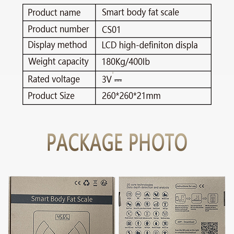 ![]() | Bluetooth body fat scale chinese version white charging model [all-inclusive foam packaging] | ¥26.9 / ≈ 327 ₽ | 66262 | 6062941267209 | |