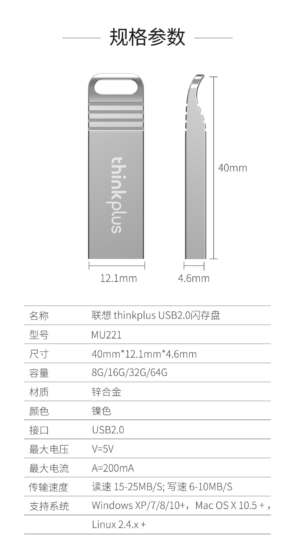 温馨提示:联想Thinkplus U盘MU221 MU222 MU223 TU201系列型号,新版实物正面logo标识全面更新;原版Thinkplus中“i”字母的红色圆点 已经正式变更成为 激光镭雕 银色样式,不再呈现红色圆点样式。