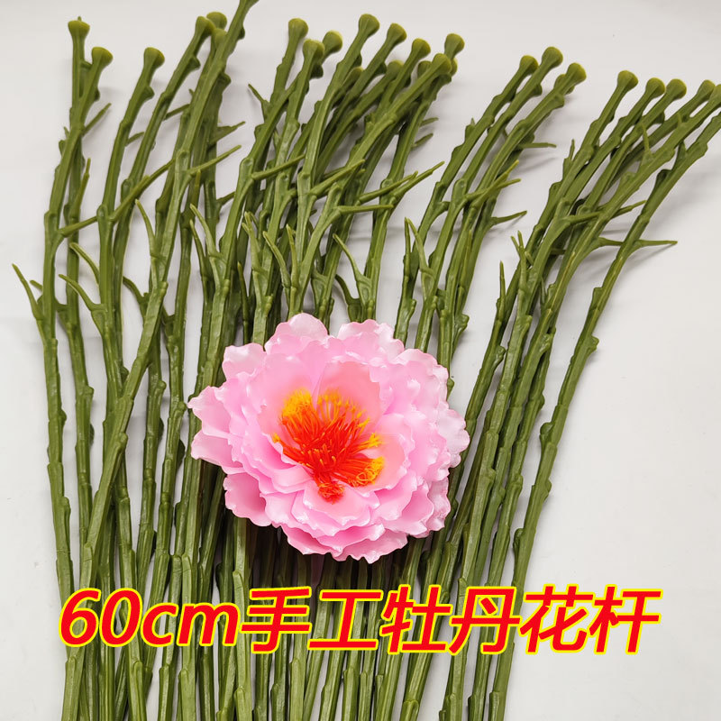 60см одноцветный ручной стебель пиона с пластиковым пакетом и большой лентой для DIY декорации