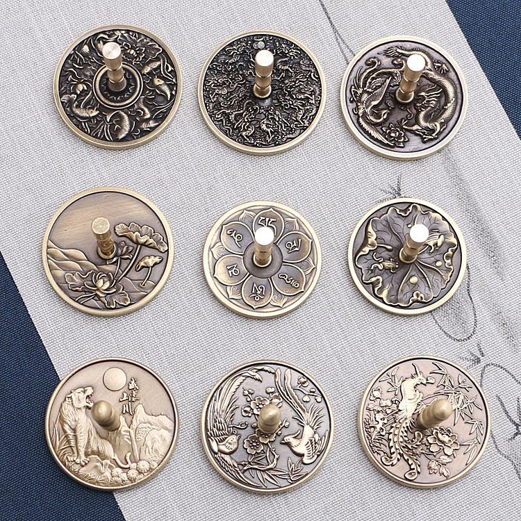 【重量】4.5厘米铜灰押荷蛙重约60g,六子箴言重约64g;5厘米铜灰押龙凤82g,九龙77g,荷花84,鱼81g,飞天神女82g,虎啸图97g,凤凰牡丹95g,双凤梅花重约97克(批次不同,重量有少许差异)