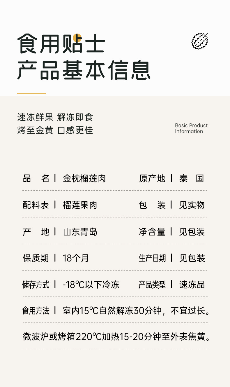 Мясо дуриана Тайского Золотого Подушки, высший сорт, замороженный, не сухой, источник фабрики, оптовая продажа