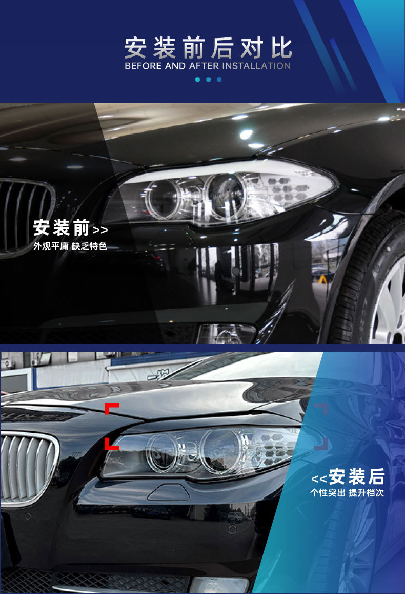 Подходит для BMW 5 Series F10 F11 2011-2014, наклейки на брови фар, модификация