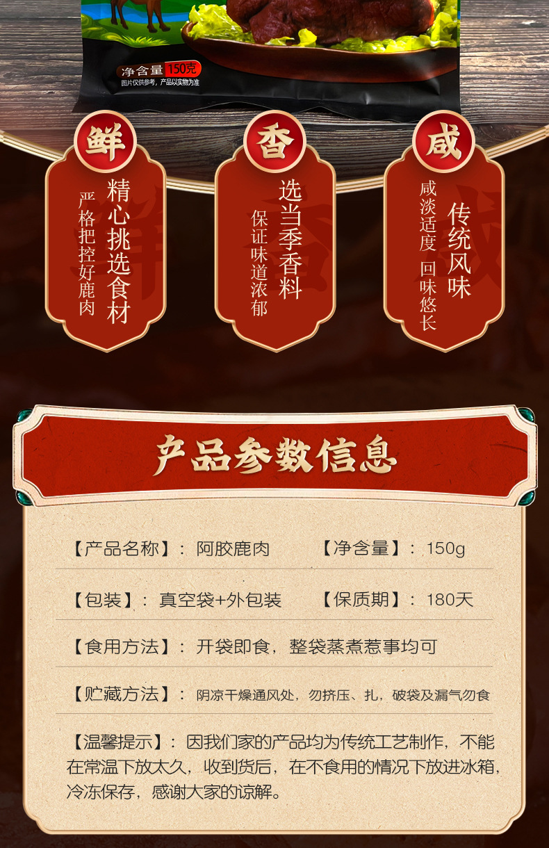 Гелатин из ослиной кожи, готовая к употреблению оленина с приправами 150г, массовое производство оленины