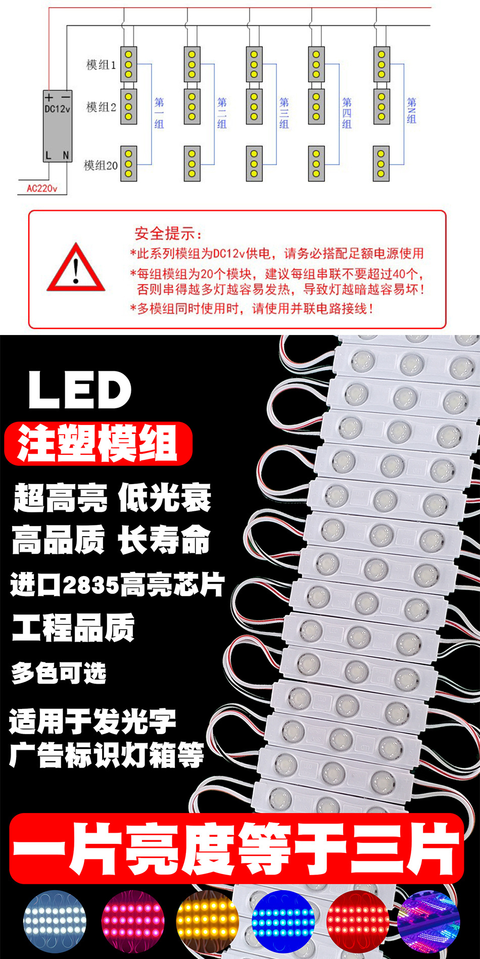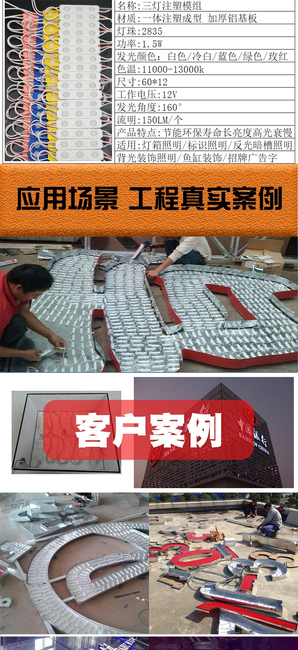 LED светящиеся знаки 2835 супер модуль 3 лампы инъекционное формование водонепроницаемый световой короб знак высокая яркость медный кронштейн линза источник света