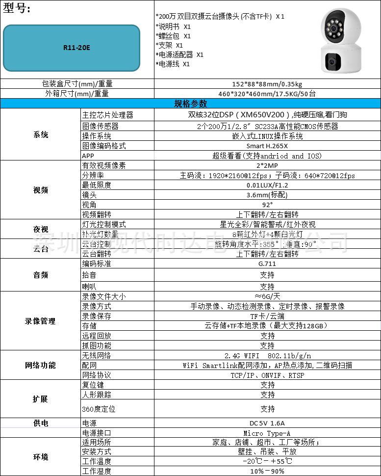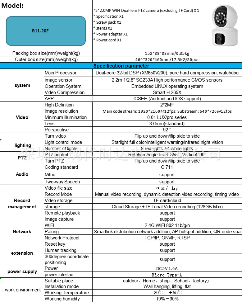 Xiongmai R11-20 Icsee, высококачественная бинокулярная камера 360, Wi-Fi IPCamera