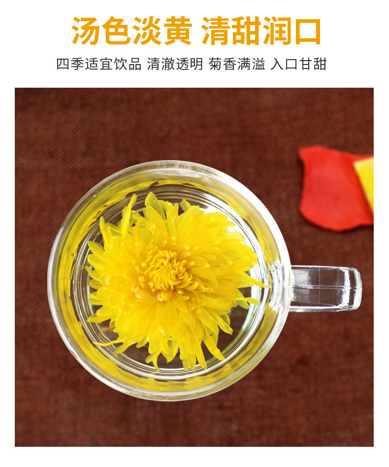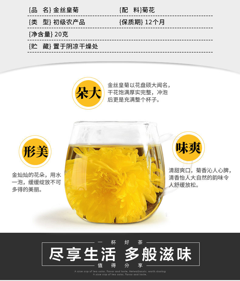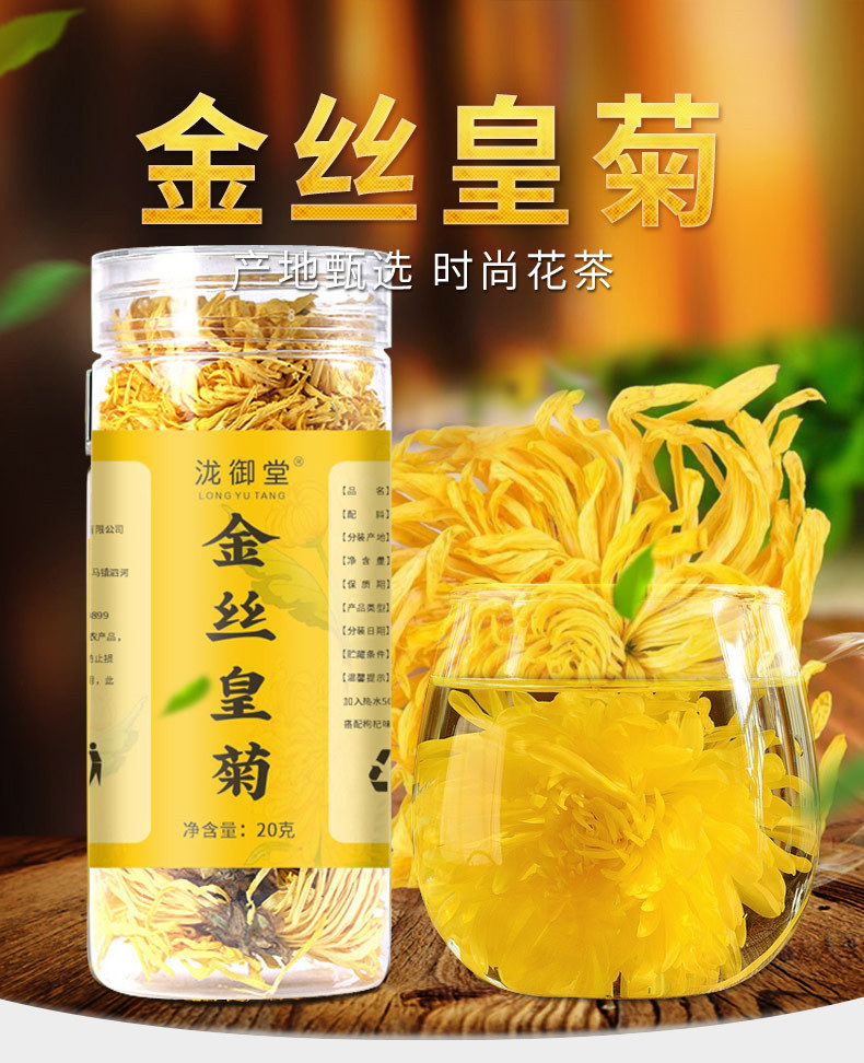 чай из хризантемы, золотистый шелк, королевская хризантема, желтая хризантема, большой чай из хризантемы, чай с ягодами годжи