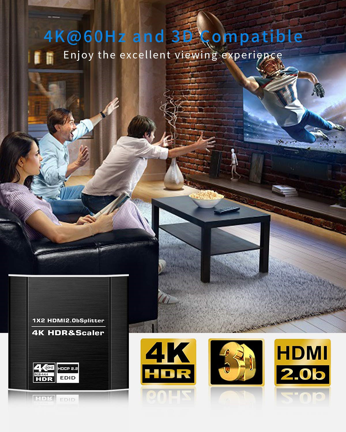 HDMI2.0 дистрибьютор 1 в 2 поддержка Scaler4K60HZ с HDCP2.34KHDR