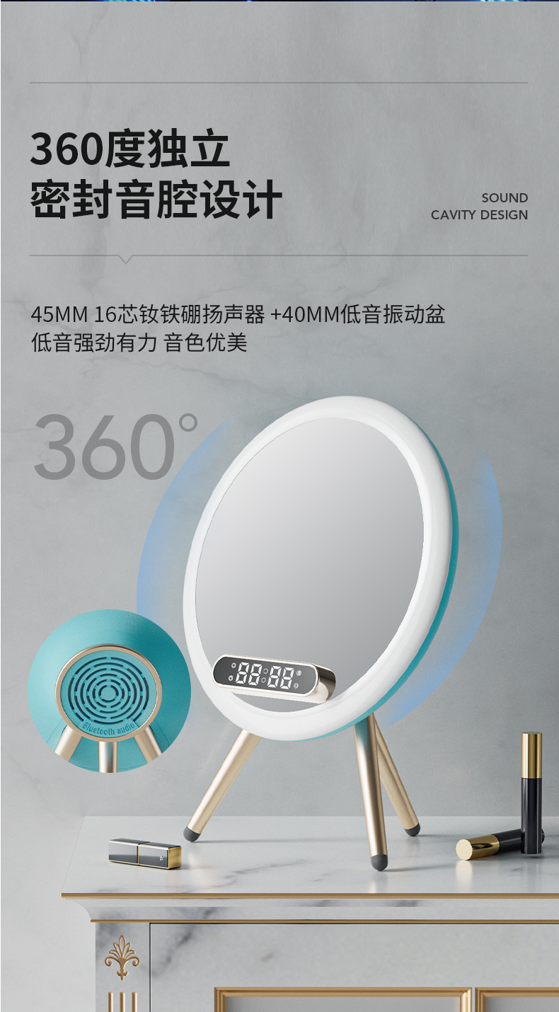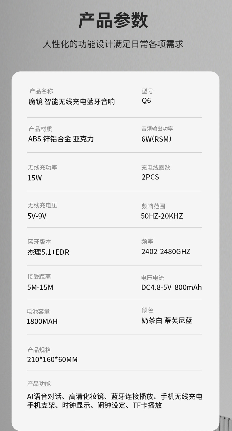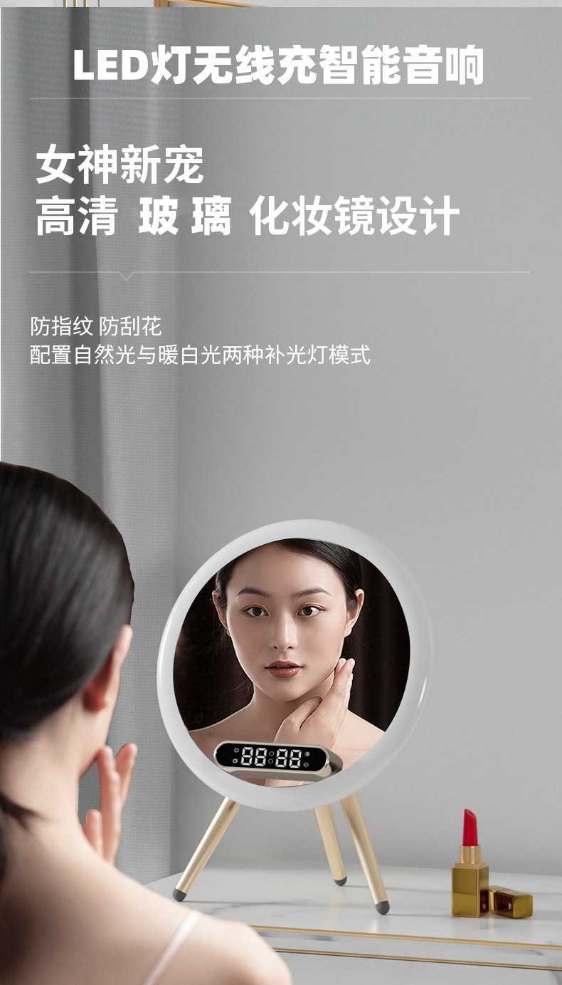 Intelligent function Beauty Mirror mobile phone wireless charging smart AI Bluetooth connection play LED night light clock display alarm setting
