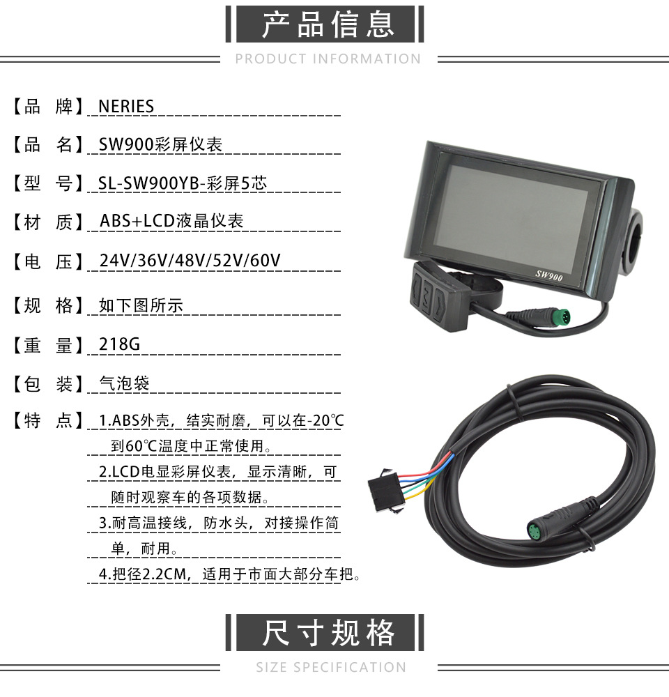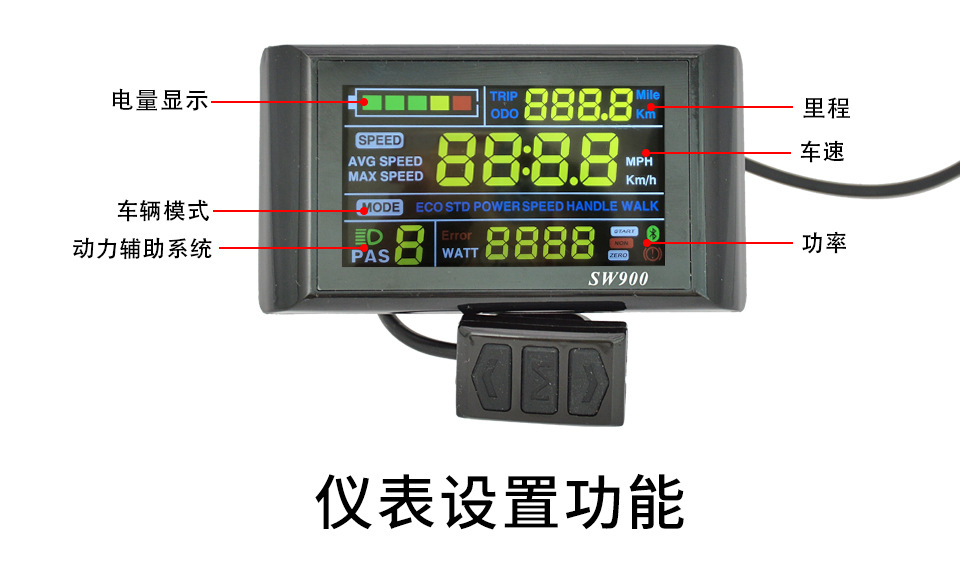 5-проводной SW900 цветной экран, интеллектуальный инструмент для электрического самоката, горного велосипеда, LCD дисплей, детали модификации