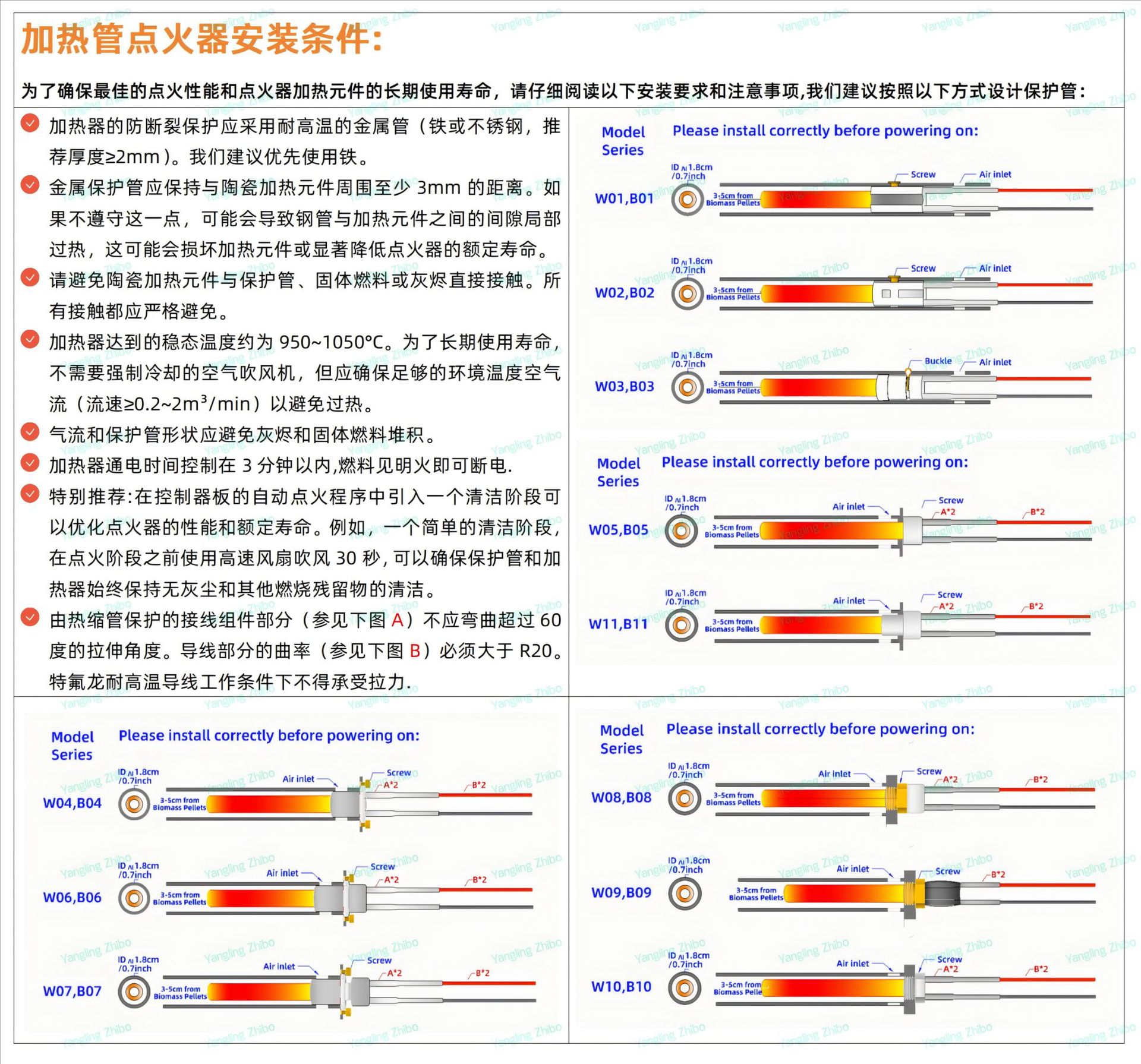 本产品是一款适用于木屑颗粒炉、烤箱等设备的陶瓷点火器。它采用氧化铝MCH陶瓷材料制作,具有热效率高、点火速度快、不易短路等特点。陶瓷点火器在多个领域已经取代了传统的不锈钢点火棒,成为了新一代环保、节能的点火设备。