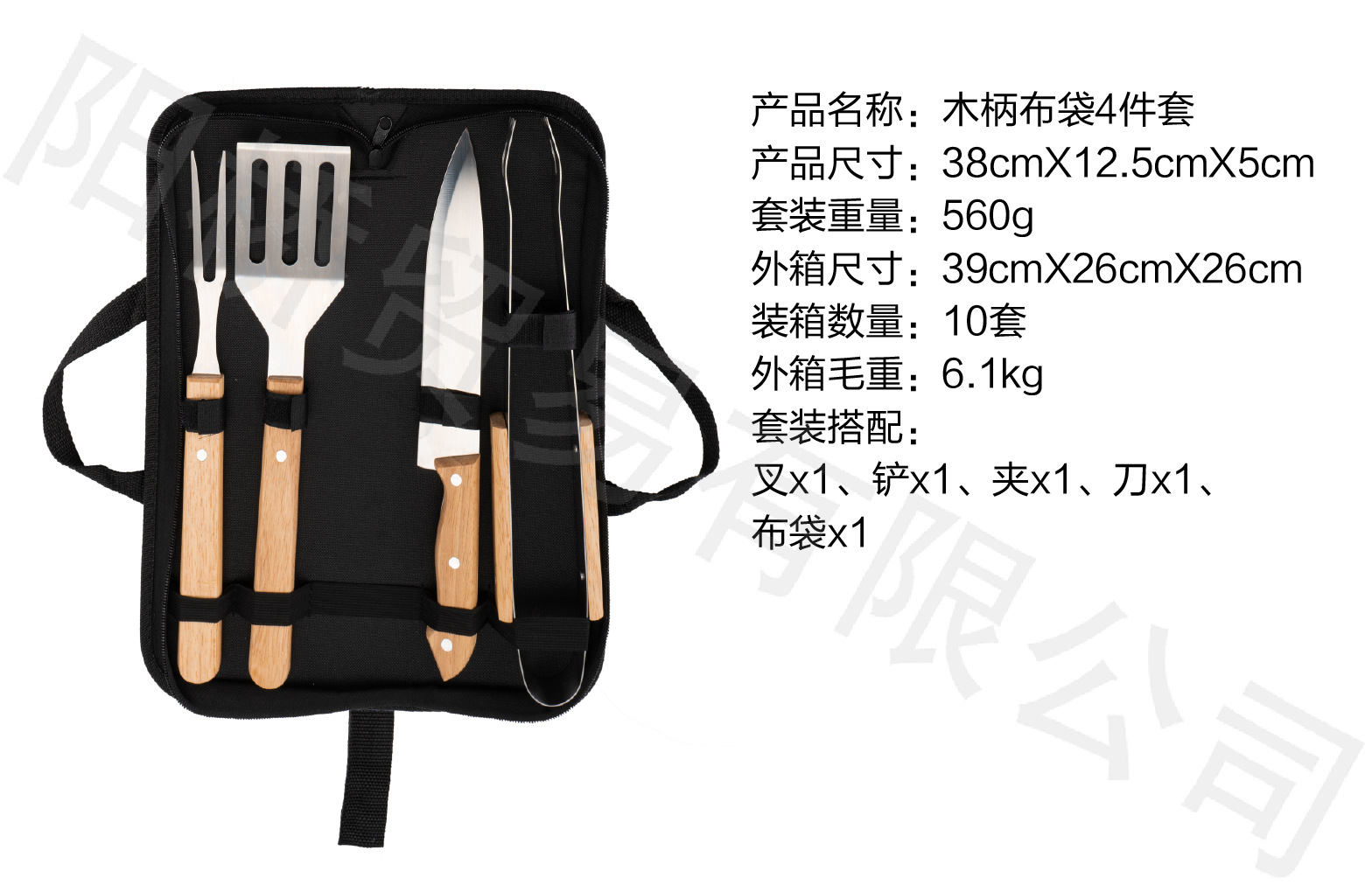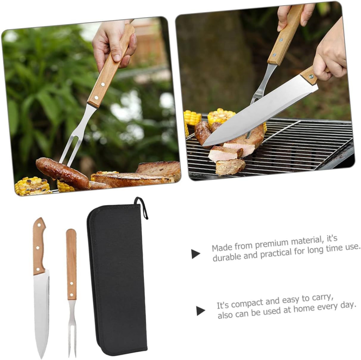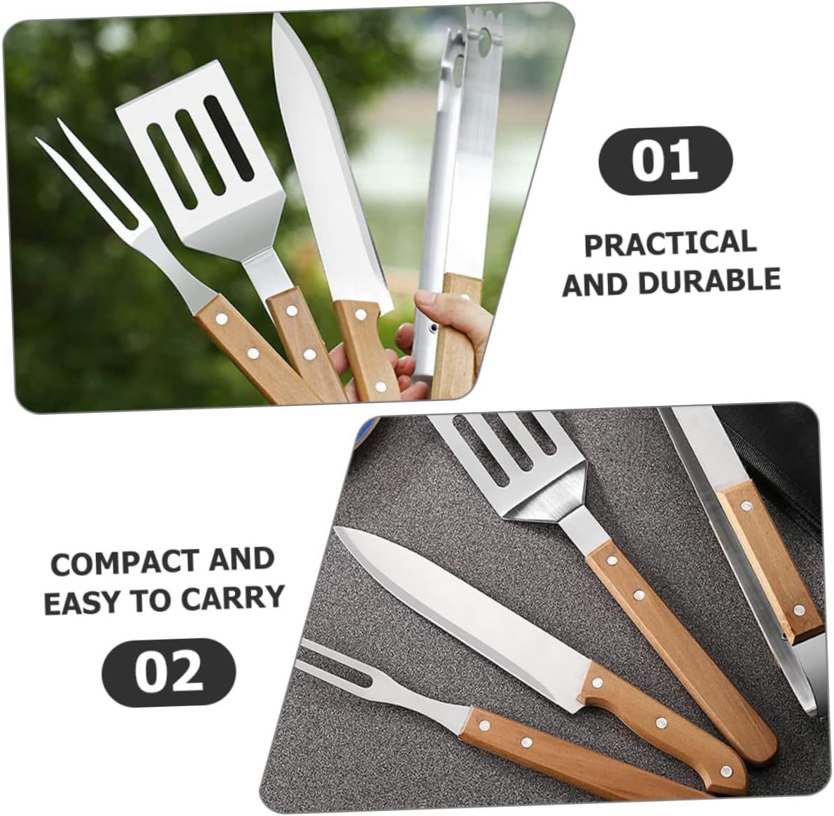 Набор инструментов для барбекю из нержавеющей стали с деревянными ручками