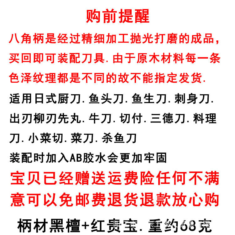 Деревянная ручка в виде восьмиугольника для японского ножа, ручка для ножа для рыбы и головы рыбы, ручная работа