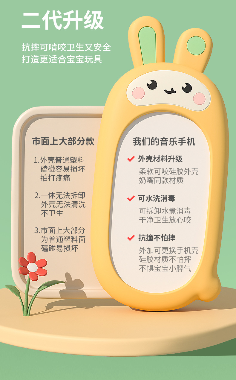 Музыкальный мобильный телефон для детей, силиконовый корпус, игрушка для новорожденных, комфорт для 0-6 месяцев