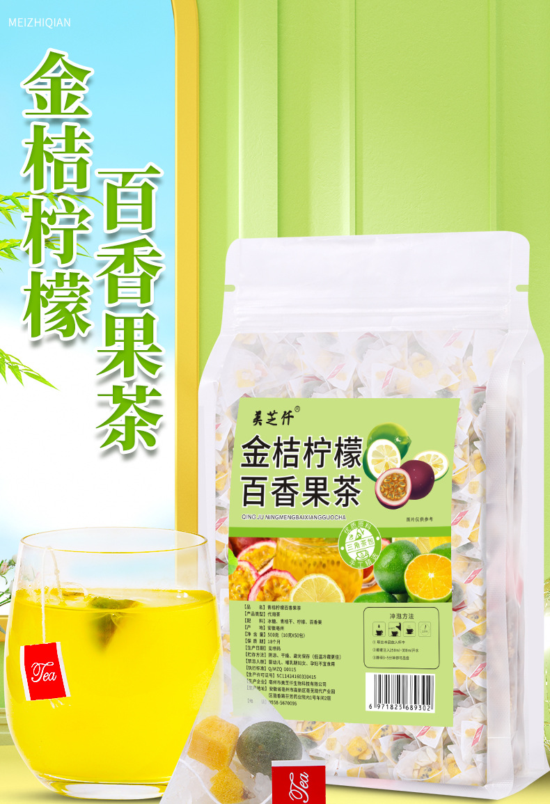 Чай с кумкватом, лимоном, зеленым апельсином, маракуйей, замороженные фрукты, пакетики с фруктовым чаем