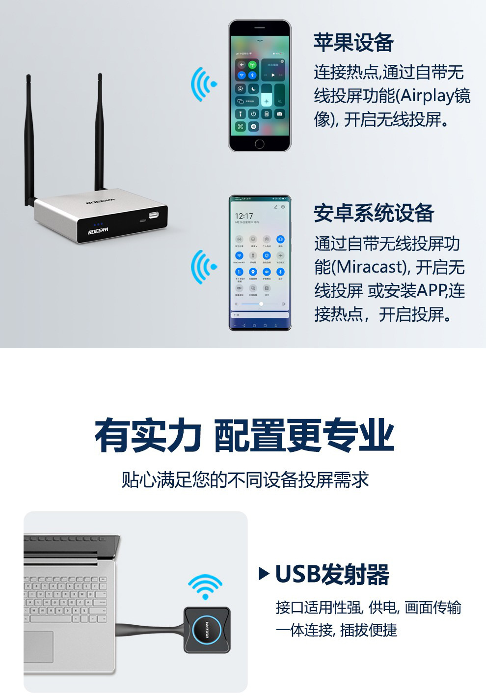 Беспроводной проектор BOEGAM Baojiang VS100/VS200 USB + HDMI + Type-C