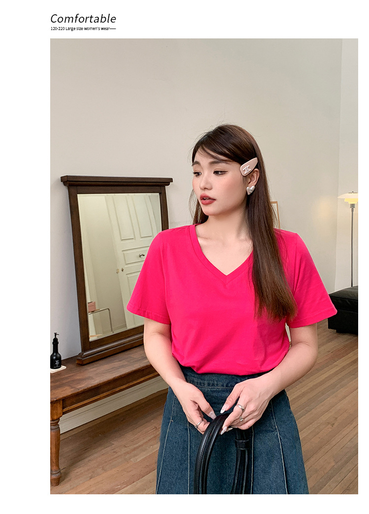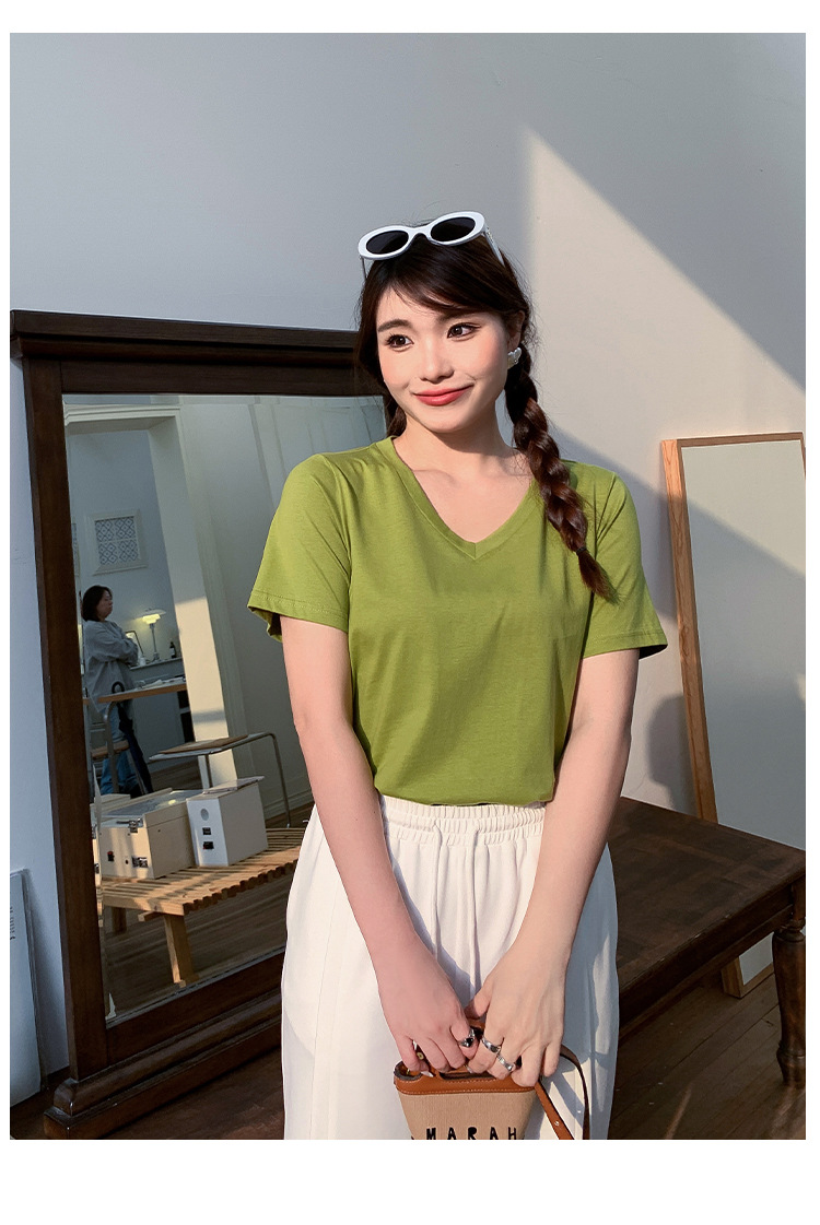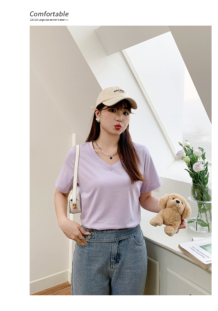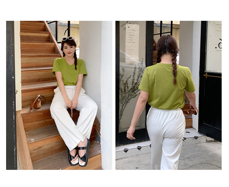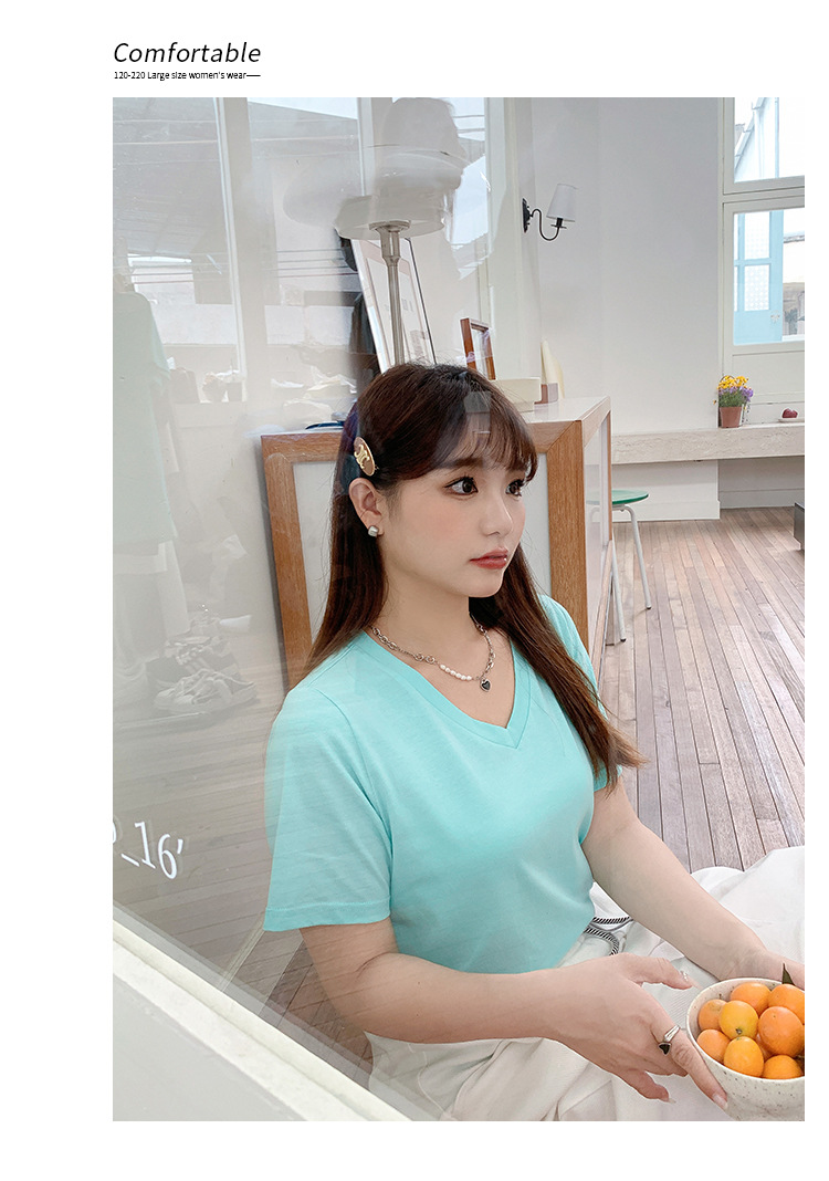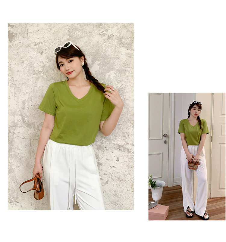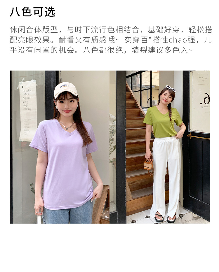 Большое количество футболок для бега, летние, микро-объем, большие размеры, базовые многокрасочные свободные футболки с V-образным вырезом 9333