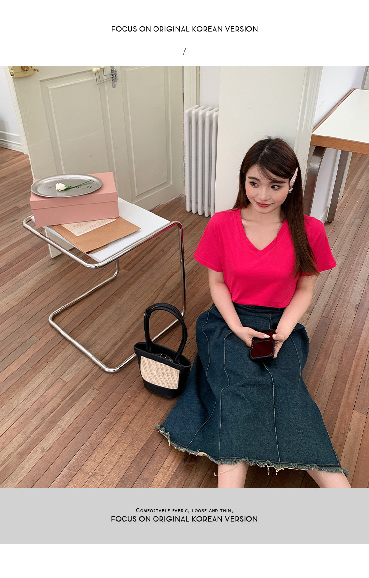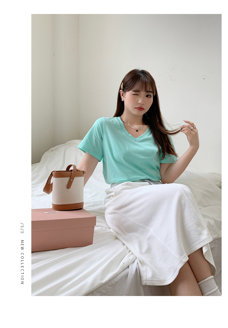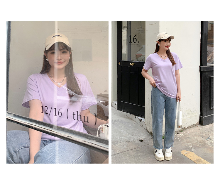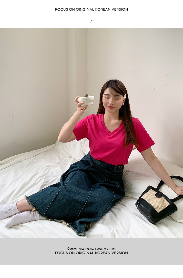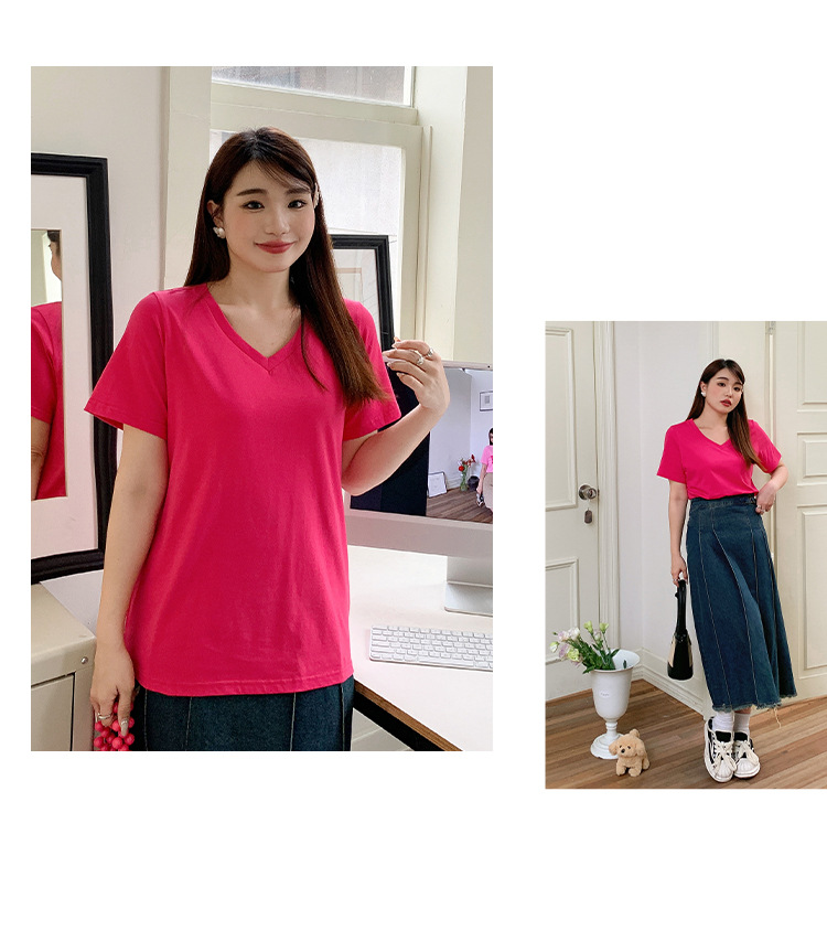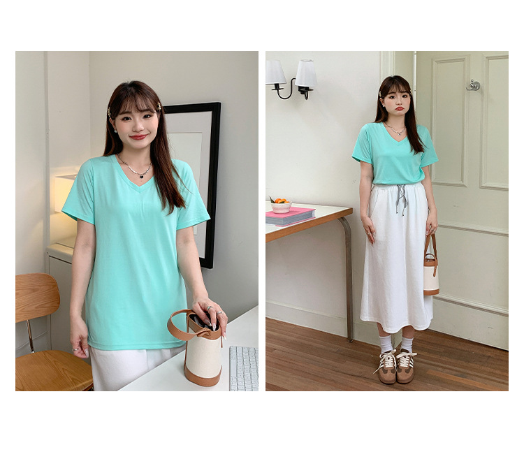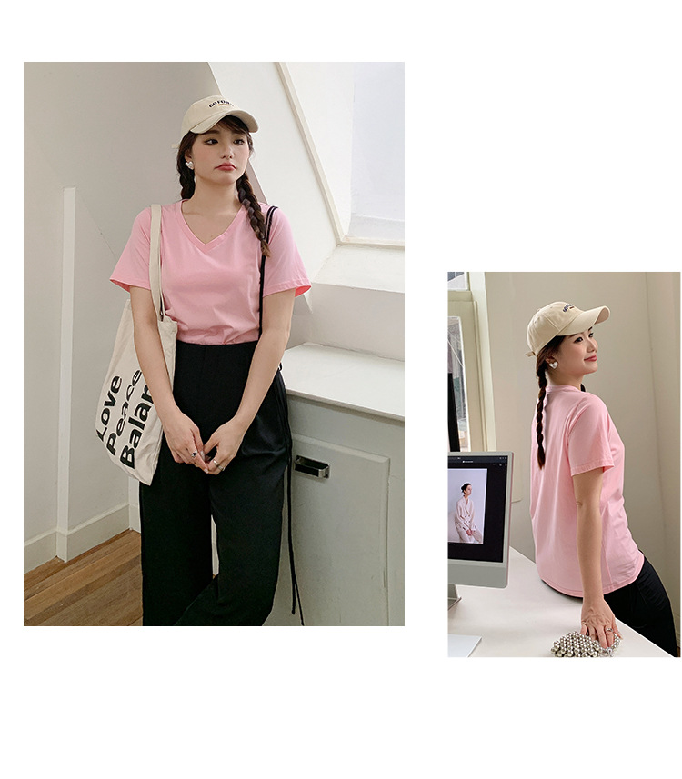 Большое количество футболок для бега, летние, микро-объем, большие размеры, базовые многокрасочные свободные футболки с V-образным вырезом 9333