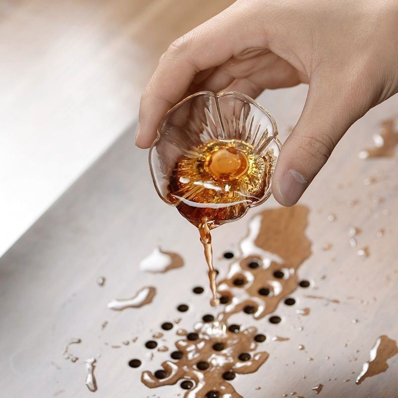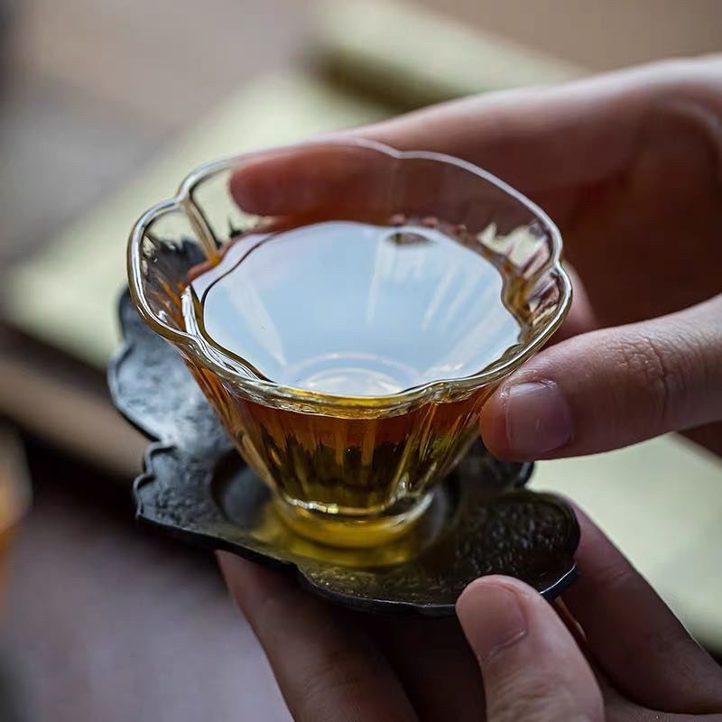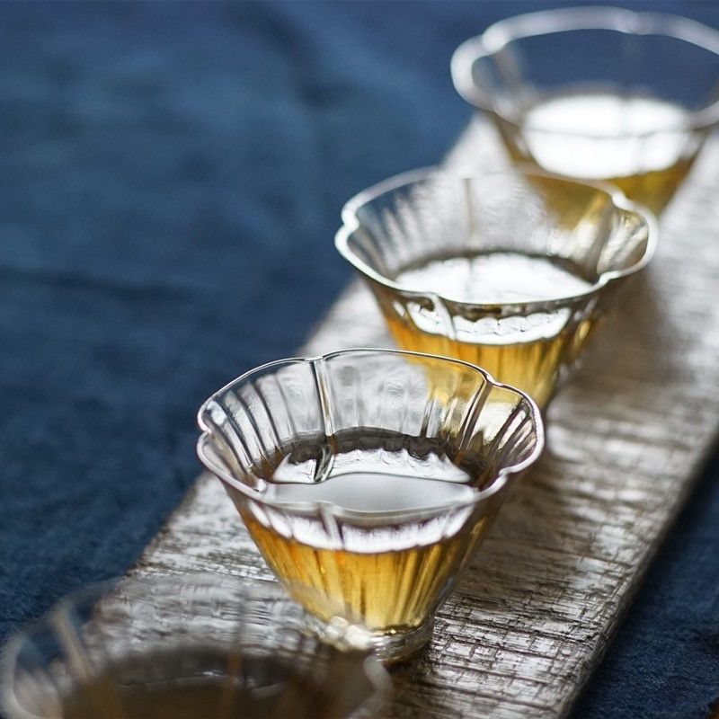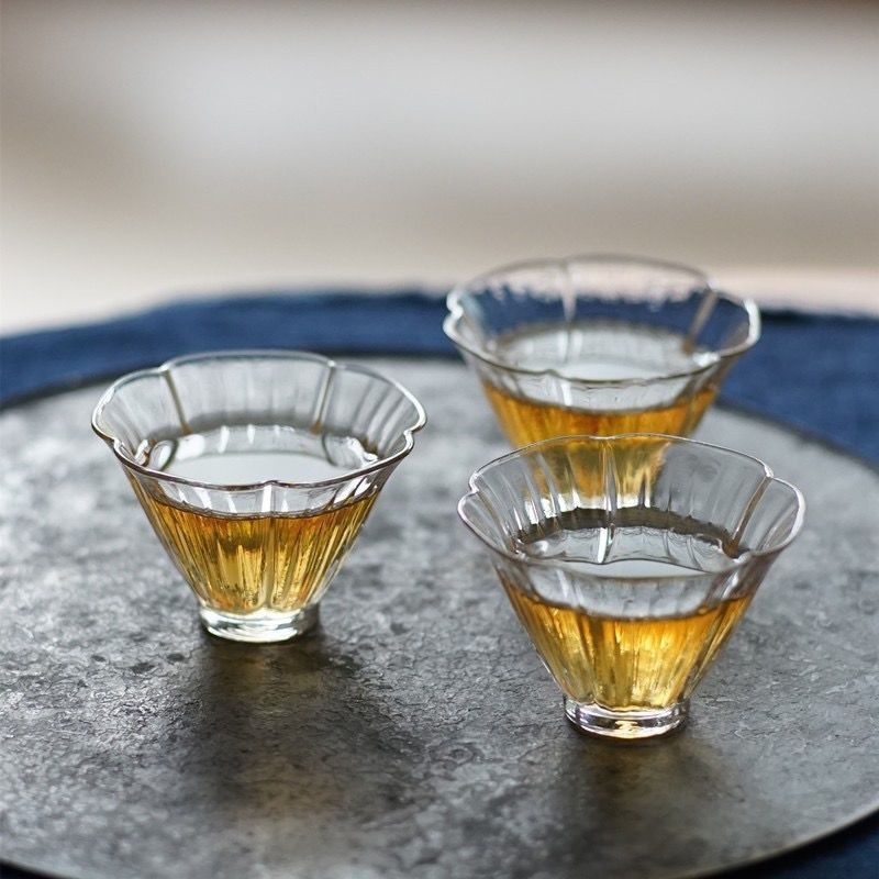 Японская маленькая чашка в форме лепестка, одна чашка, жаропрочная стеклянная чашка, чашка с узором молотка, японская домашняя чашка