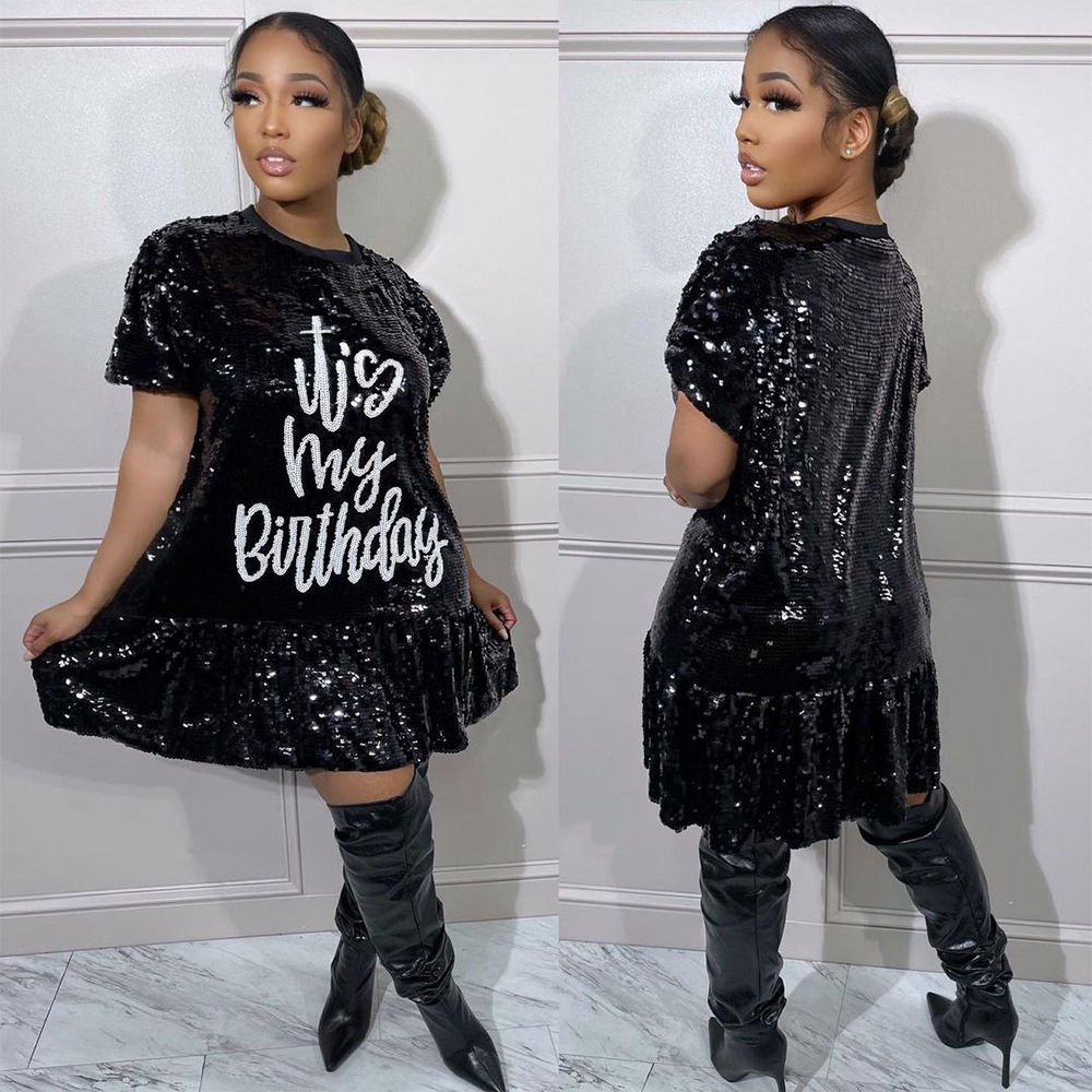 платье с круглым вырезом и коротким рукавом CY900541 в европейском и американском стиле, свободное, повседневное, с юбкой лотос