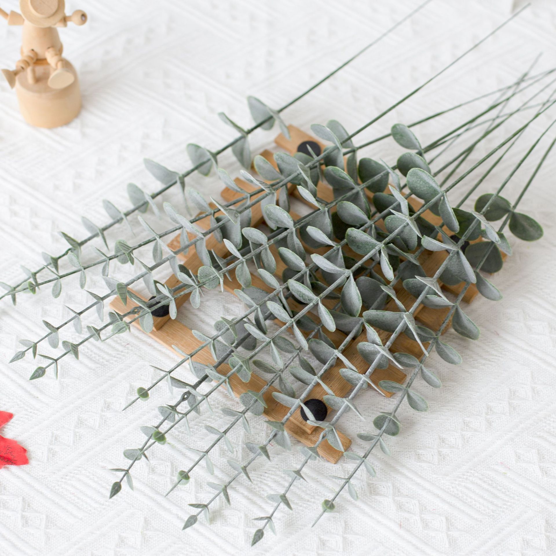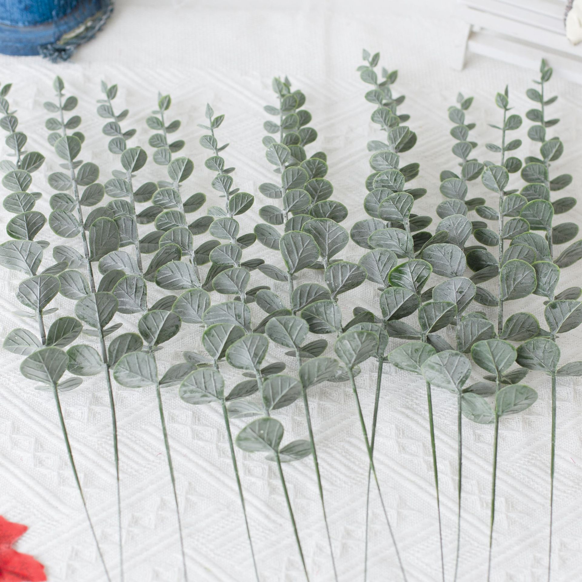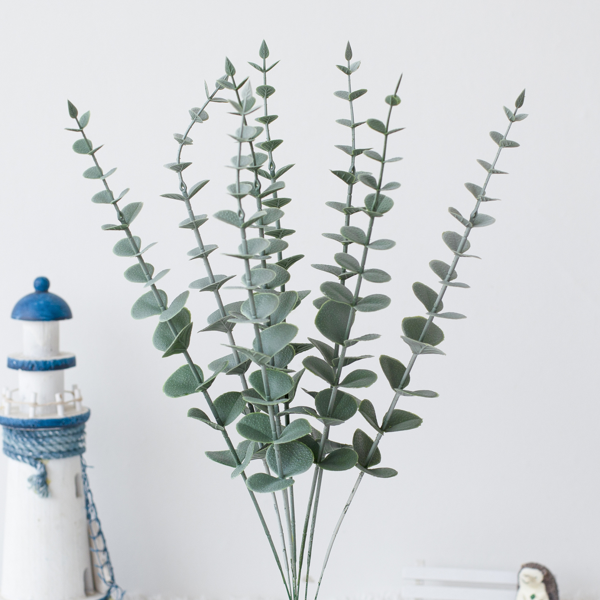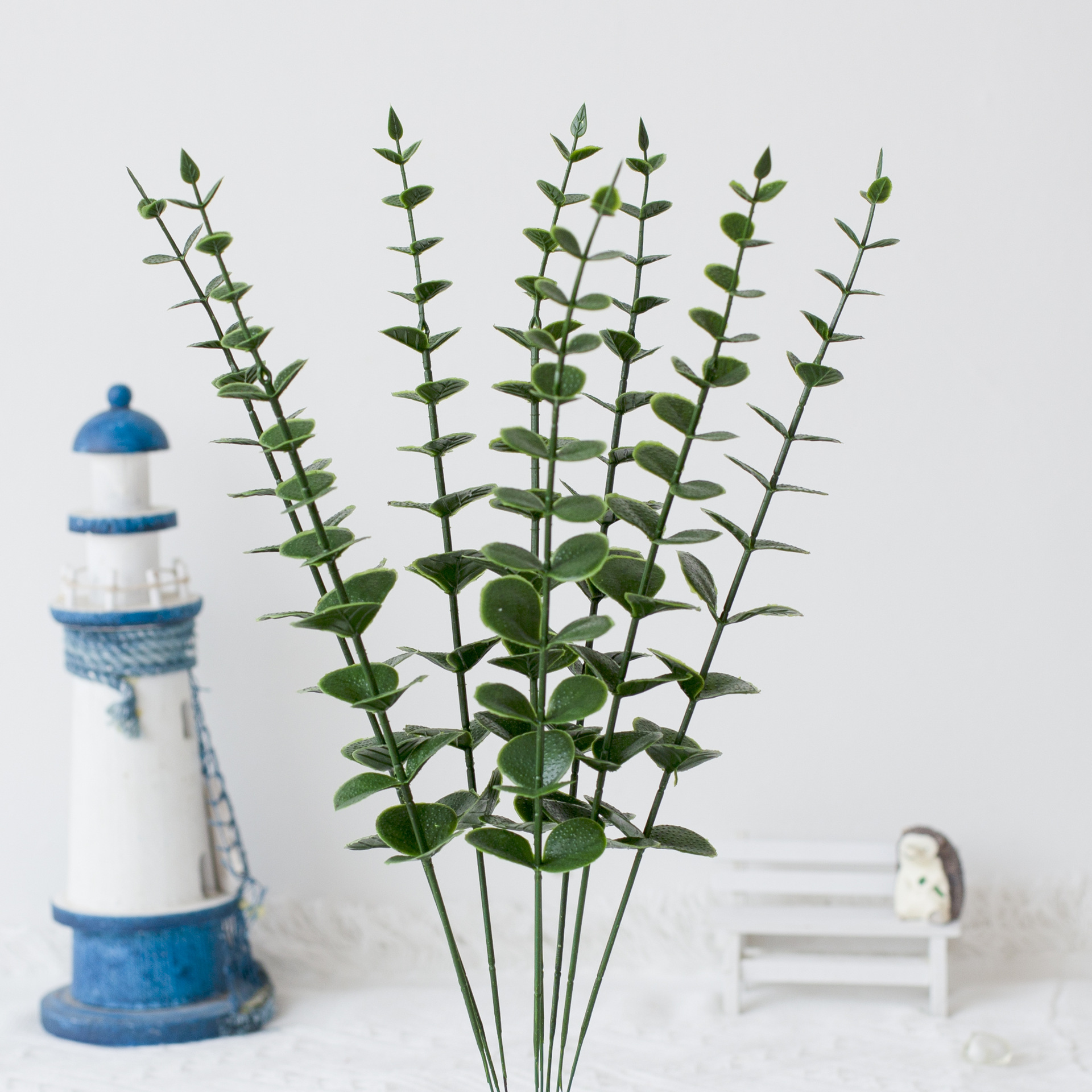 Кросс-бордовые искусственные стебли эвкалиптовых листьев Один эвкалиптовый лист Зеленые ветви Декор для домашнего интерьера Зеленые растения оптом