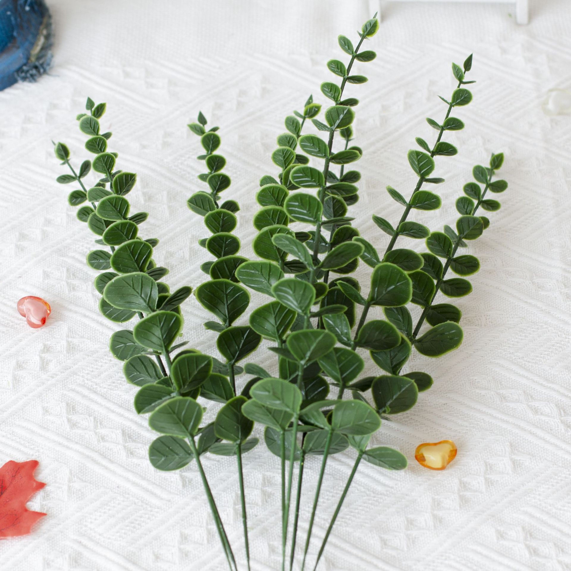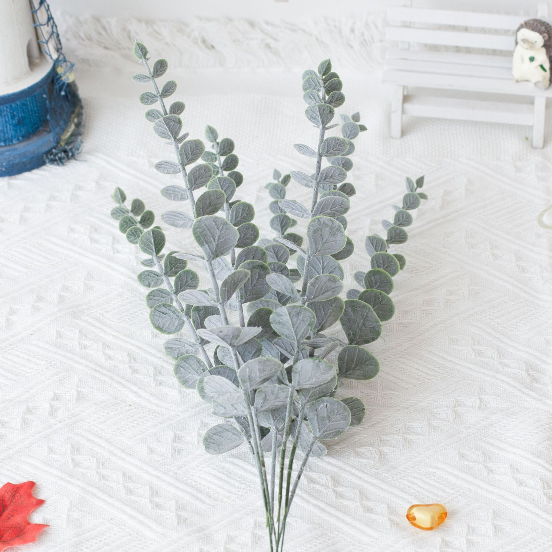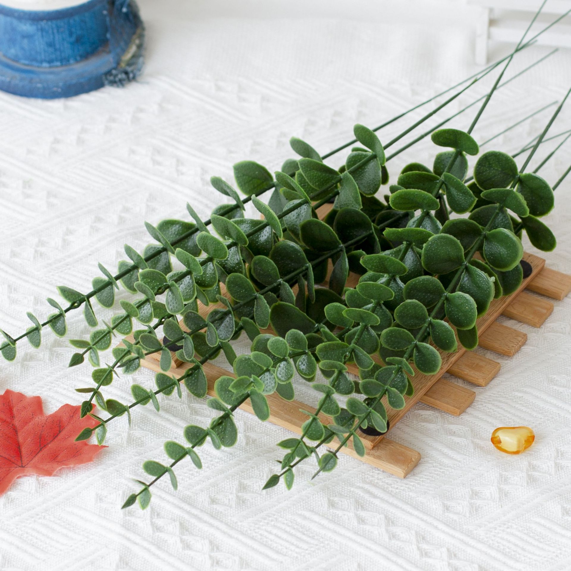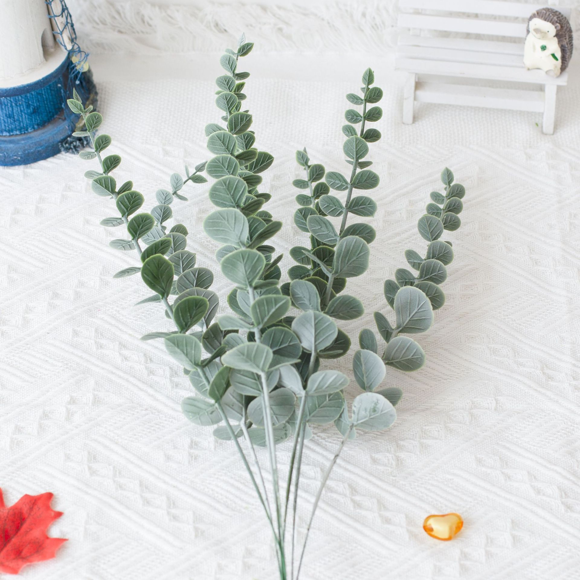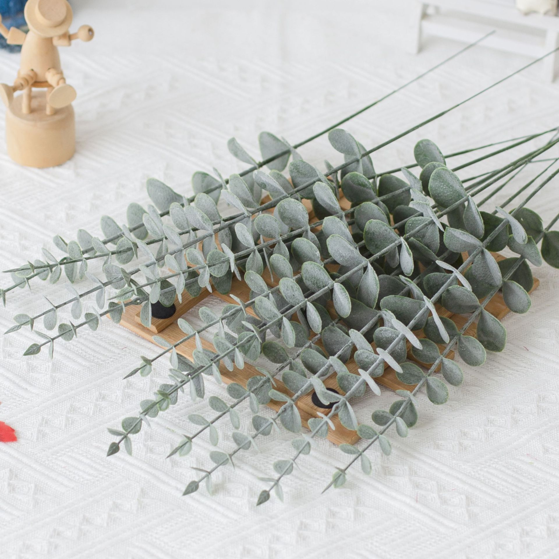 Кросс-бордовые искусственные стебли эвкалиптовых листьев Один эвкалиптовый лист Зеленые ветви Декор для домашнего интерьера Зеленые растения оптом