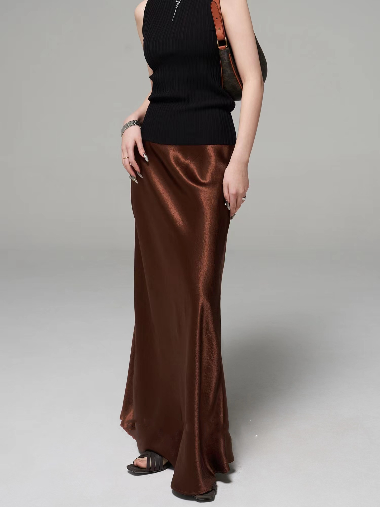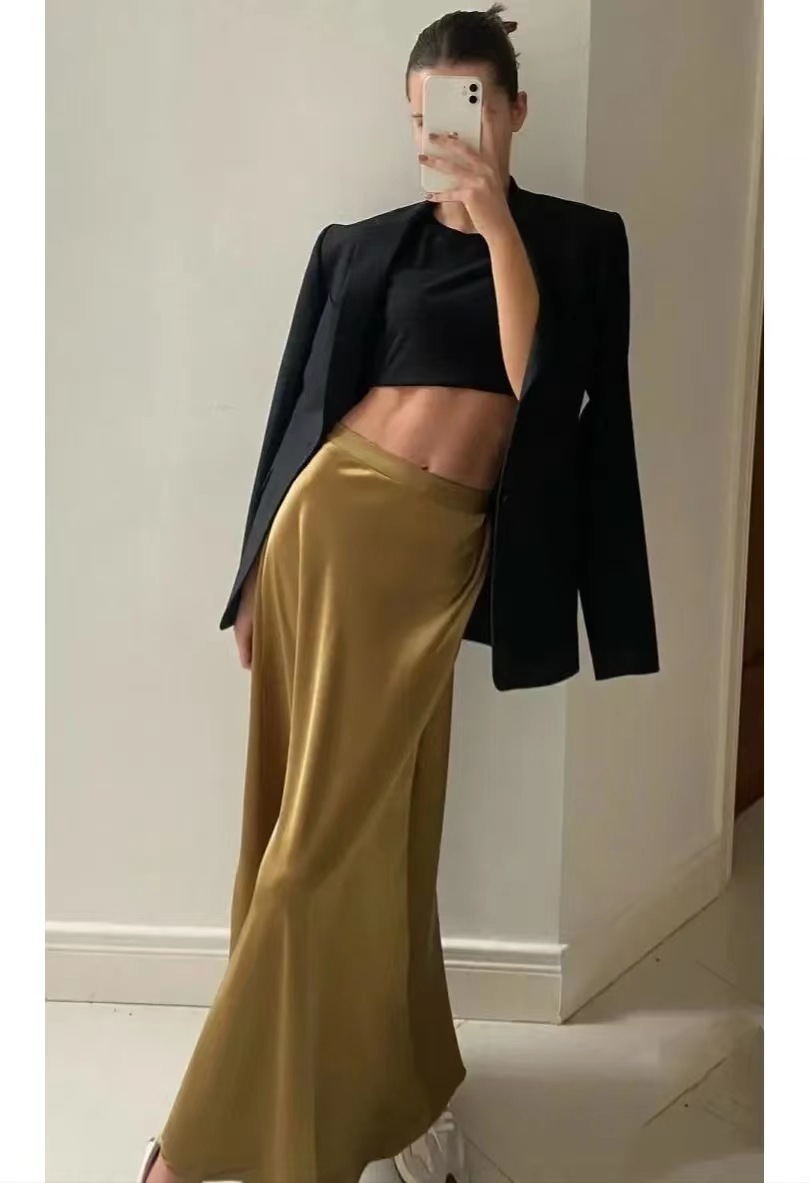 Юбка из триацетата, импортированная из Японии, с косым кроем 45°, длина до пола, высокая талия, A-образная, с хвостом, для женщин, весна и лето