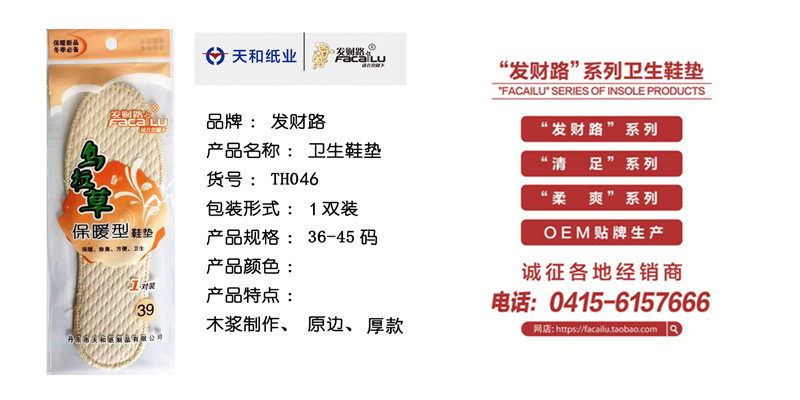 发财路鞋垫是丹东天和纸制品有限公司生产,请认准正品!!!!!!!