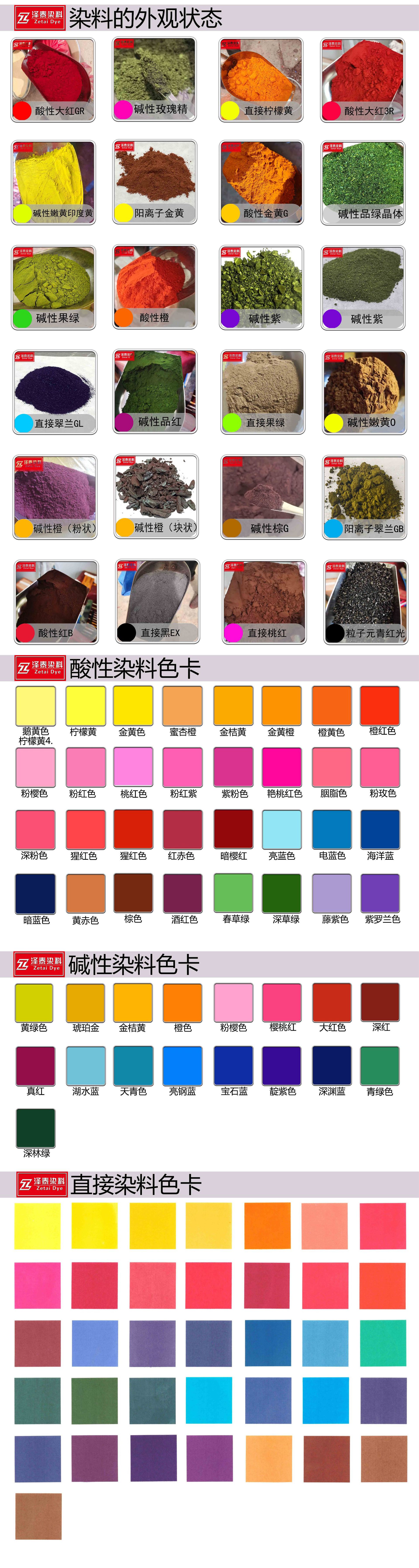 В наличии у производителя кислотные красители, щелочные красители и катионные золотые красители для текстильной печати и горячего тиснения бумаги