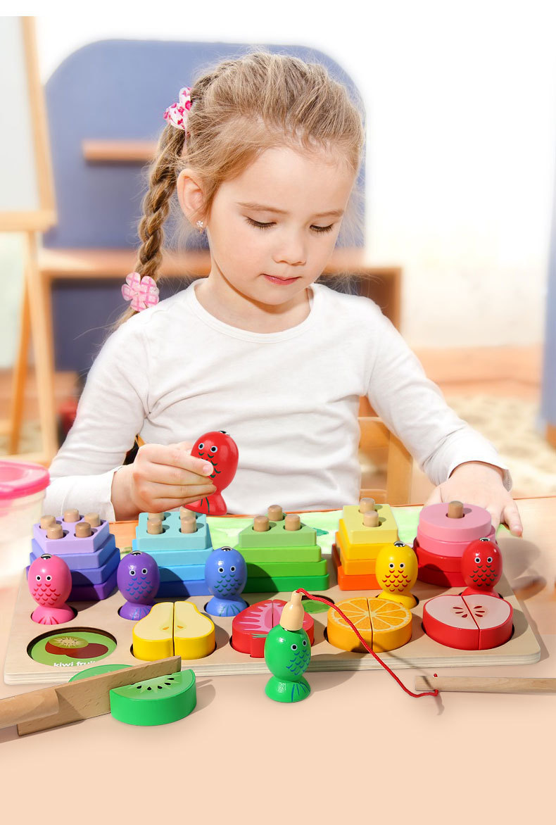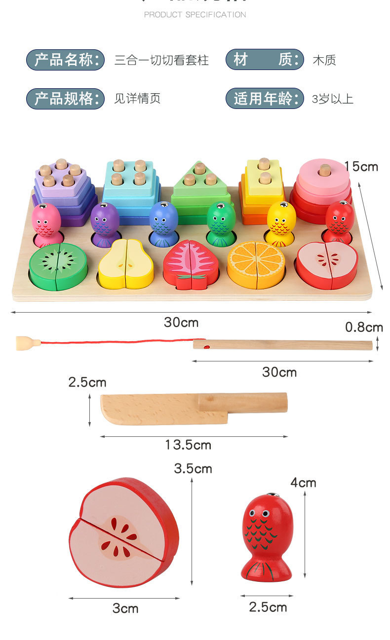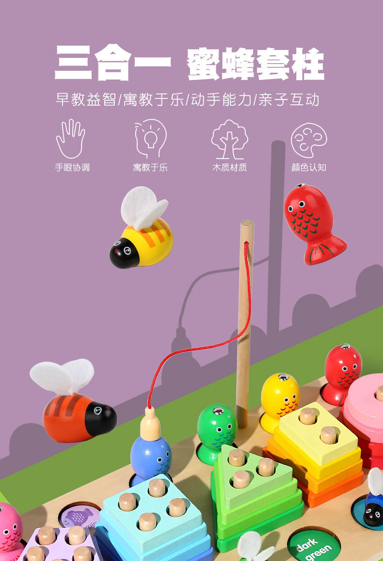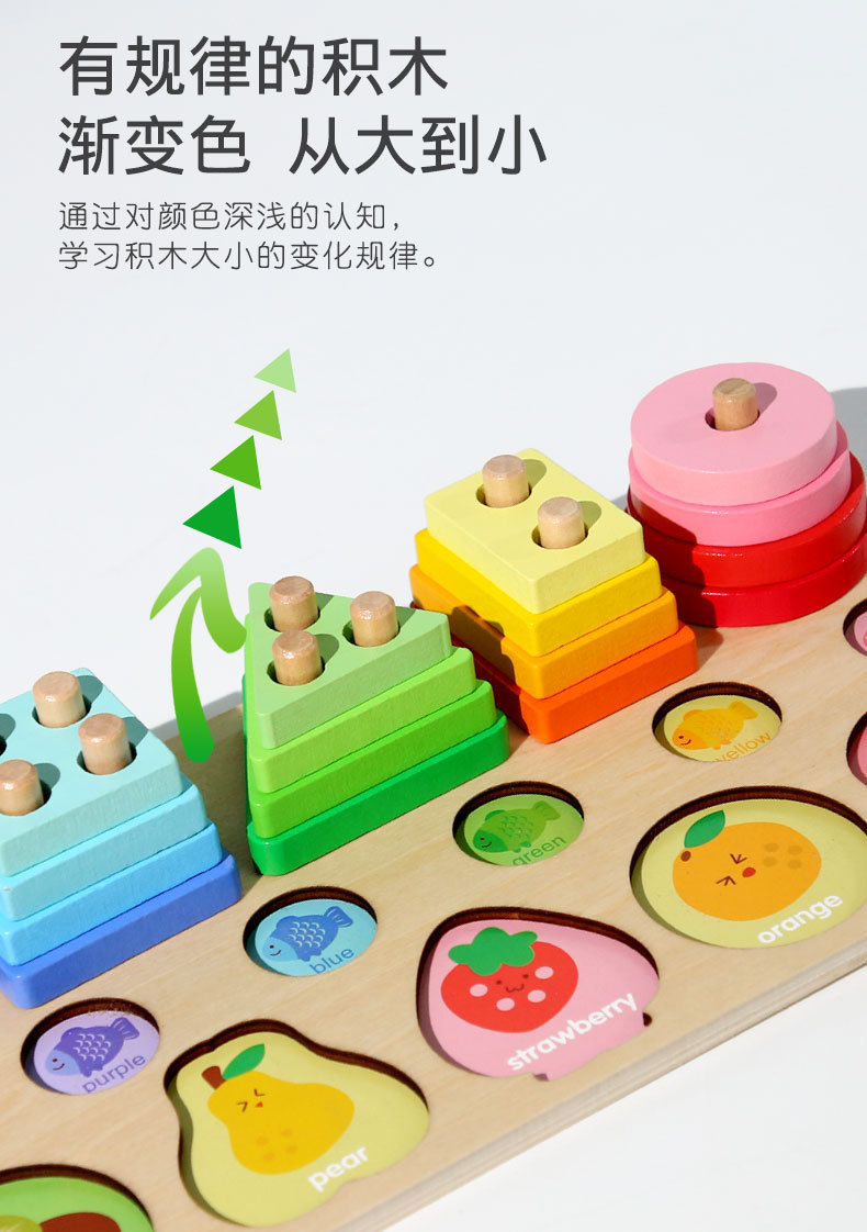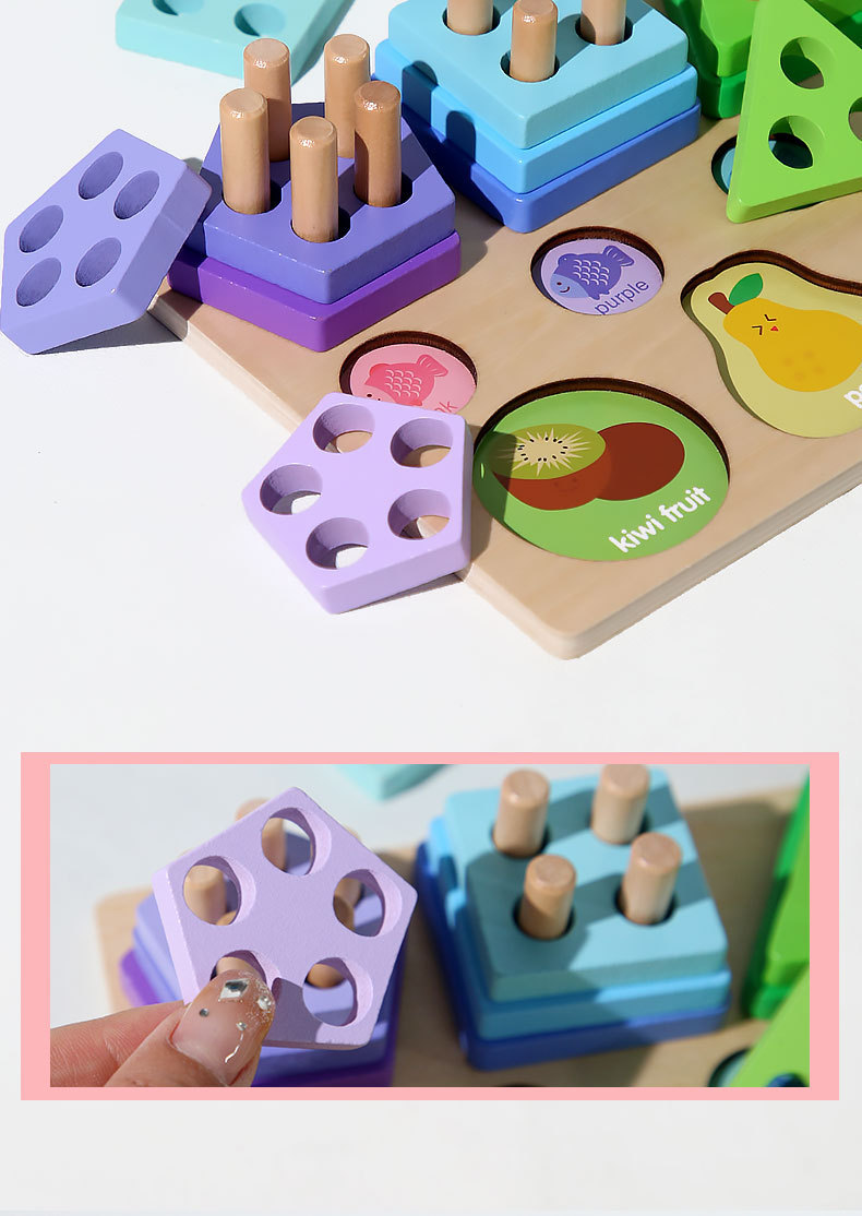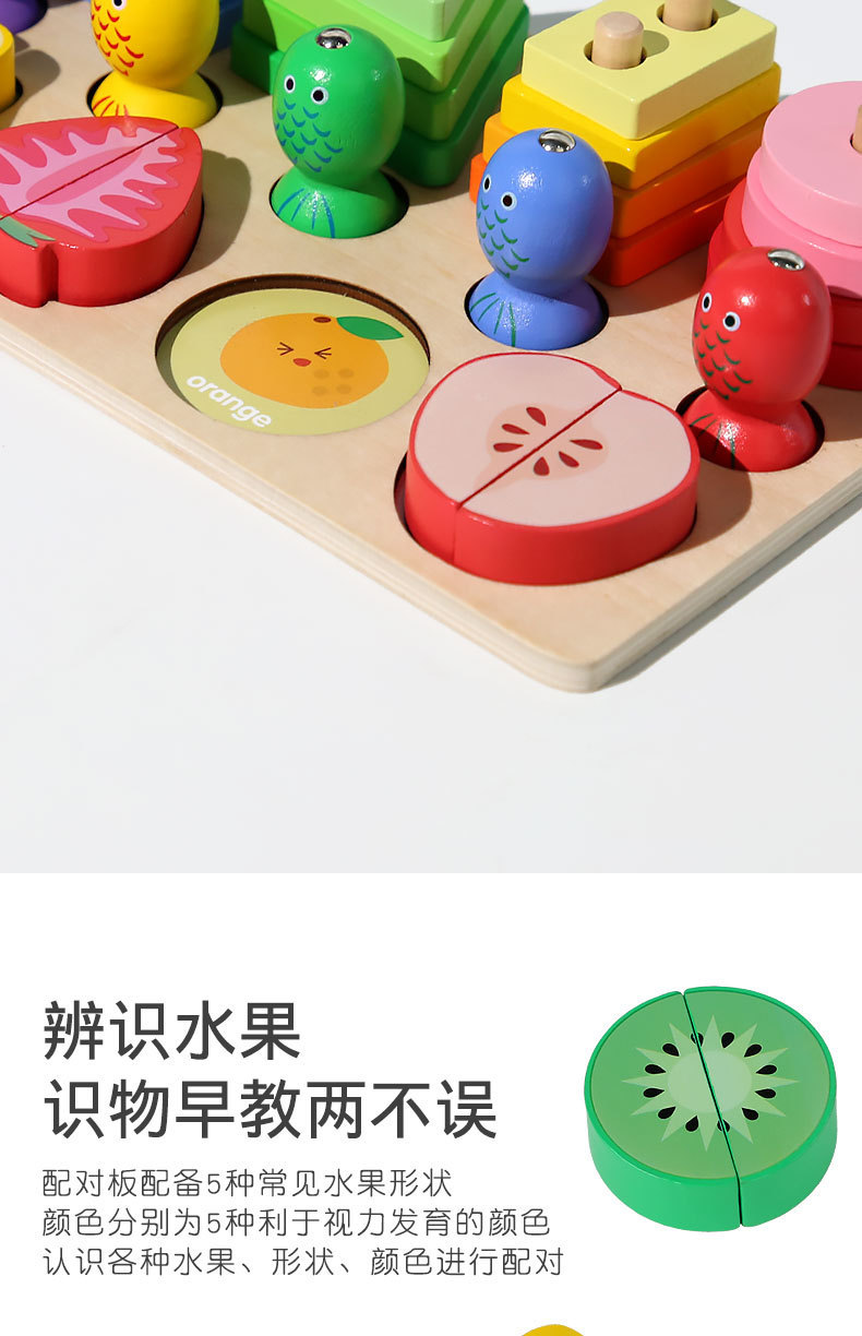 Детские деревянные игрушки для раннего обучения, три в одном, геометрические фигуры, пять наборов колонн