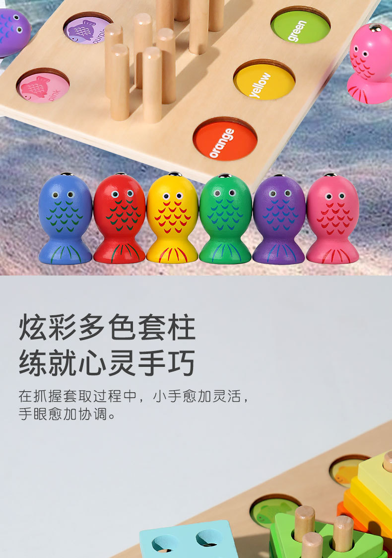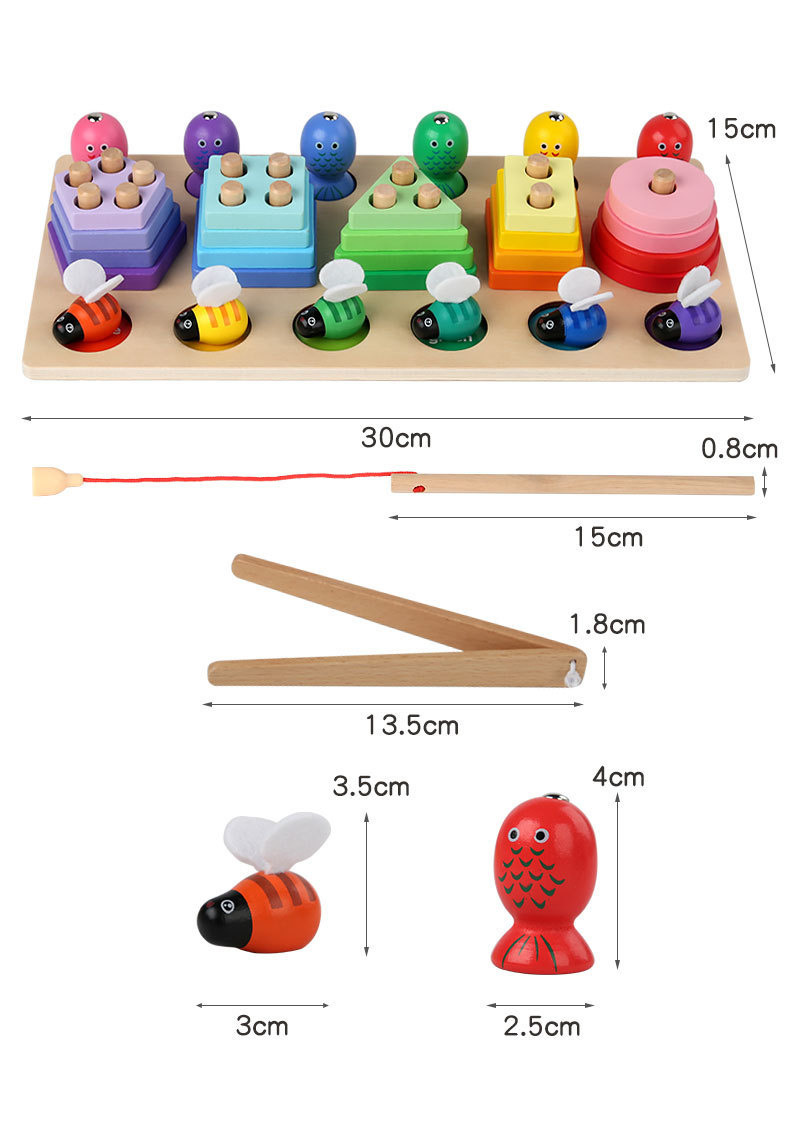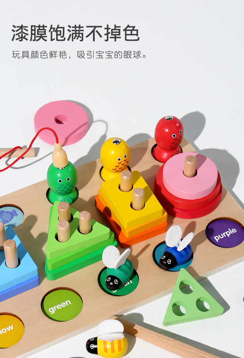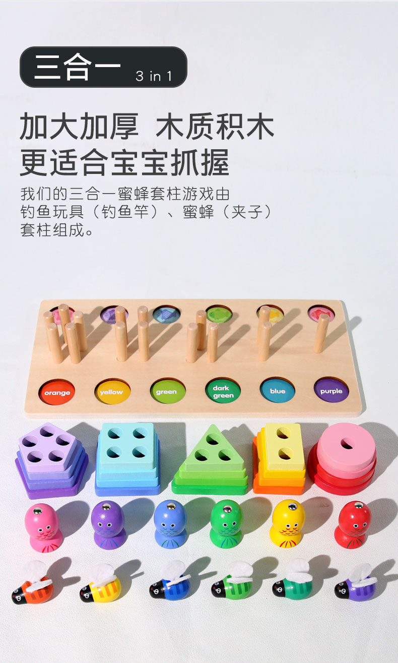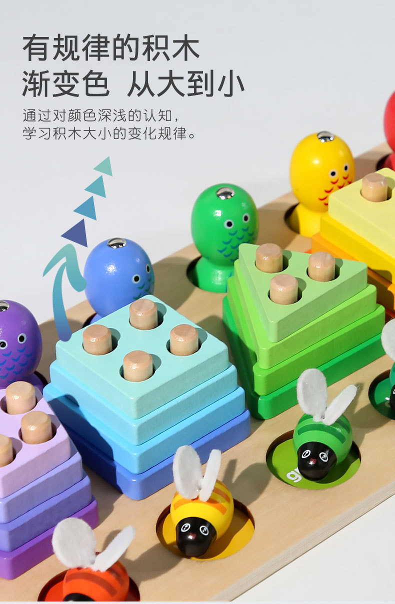 Детские деревянные игрушки для раннего обучения, три в одном, геометрические фигуры, пять наборов колонн
