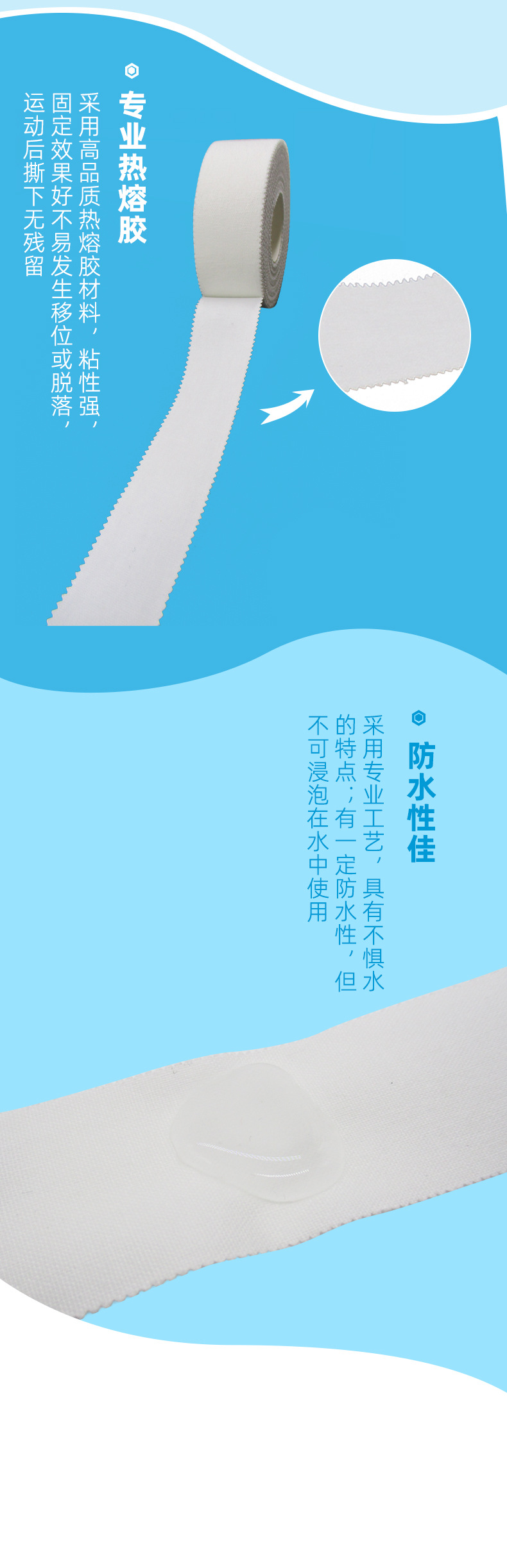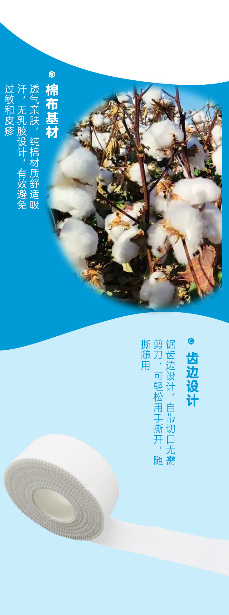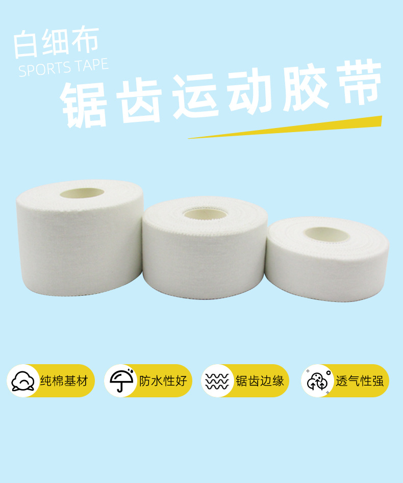 защитное снаряжение для спортивной терапии, белая лента с зубчатыми краями, хлопковая лента