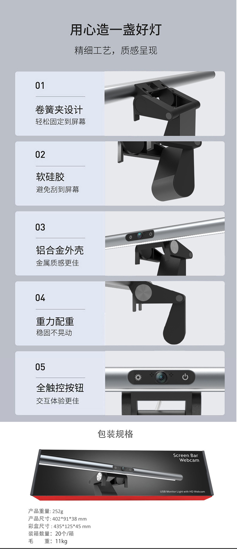 Висячая лампа с HD камерой, защита глаз для плоских и изогнутых экранов, универсальная анти-синий свет