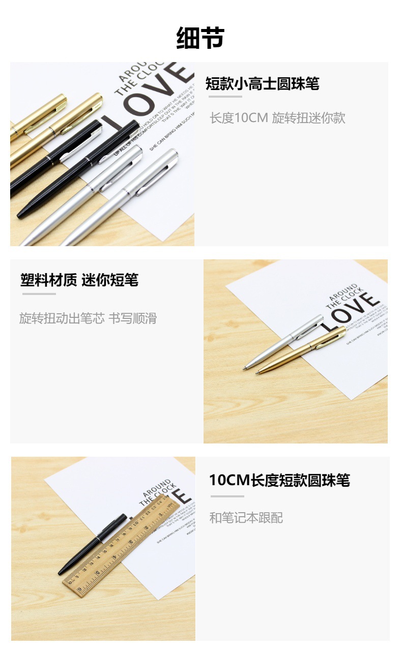 Короткая 10 см маленькая шариковая ручка, вращающаяся мини-ручка Xihua золотого и серебряного цвета с блокнотом, подарок-шариковая ручка