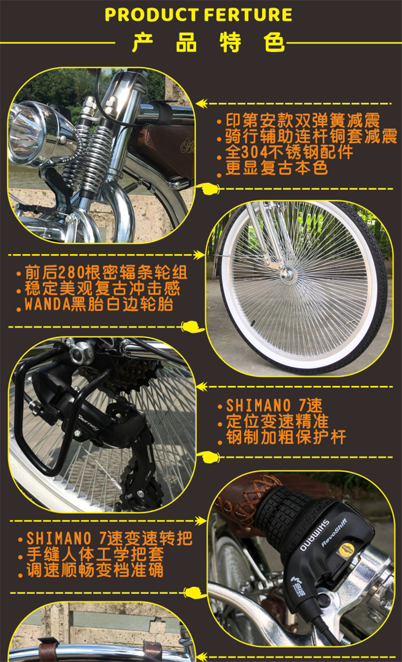 Серебряный Biao интернет-церемониймейстер роскошный высококлассный ретро-велосипед с переменной скоростью классический автомобиль Harley дорожный автомобиль для путешествий женский